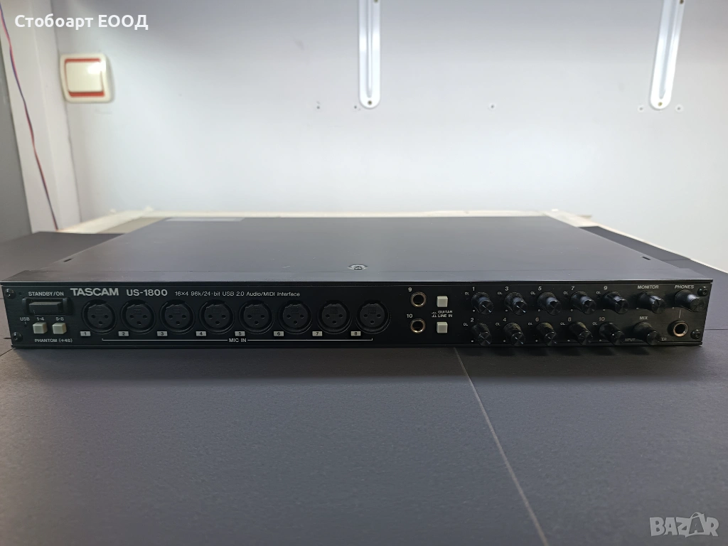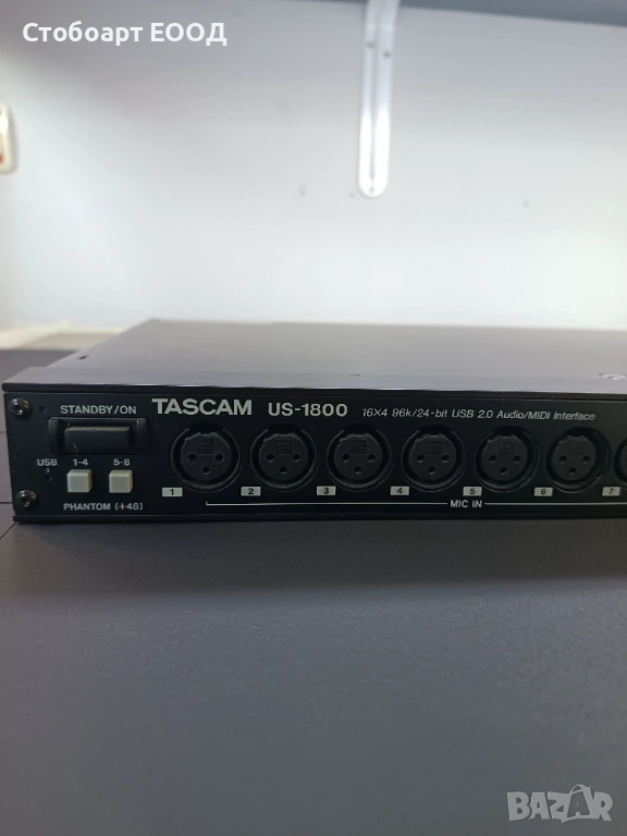 Tascam US-1800 е много входен миди интерфейс (идеален за запис на групи+барабани).Аудио картата е с оригиналното захранване на Tascam, поддържа +48V за кондензаторни микрофони.Като забележки липсват гумените крачета от долният капак и няколко винта от горният.Нормални следи от експлоатация.Към нея подарявам кондензаторен микрофон Behringer B-2. Всичко е тествано и работи безупречно.Цената е крайна и е съобразена със състоянието на картата, коментарите относно нея са излишни.Изпращам с Еконт!