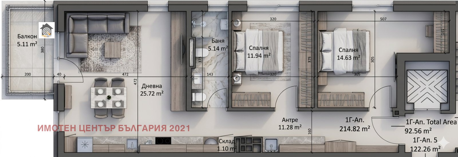 🏡Жилището се намира на втори етаж със западно изложение и разполага с 93 кв. м. чиста жилищна площ.