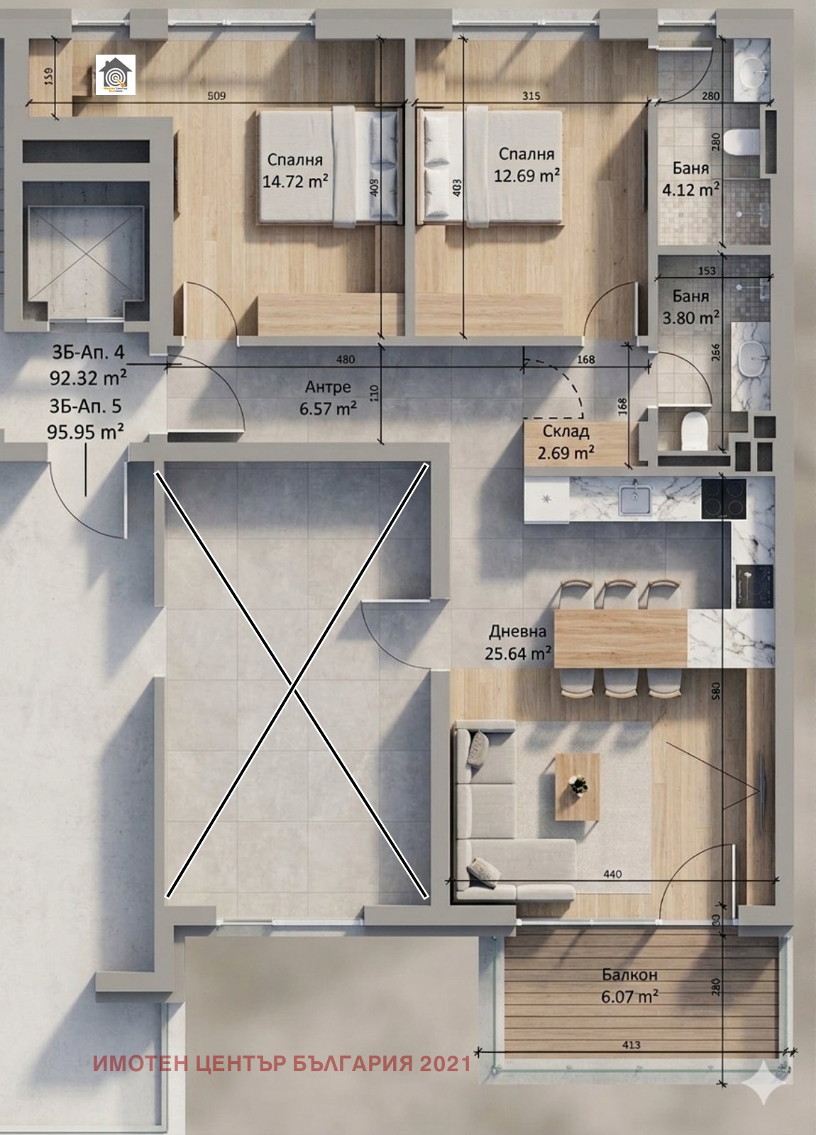 🏡Жилището се намира на втори етаж и разполага с 93 кв. м. чиста жилищна площ.