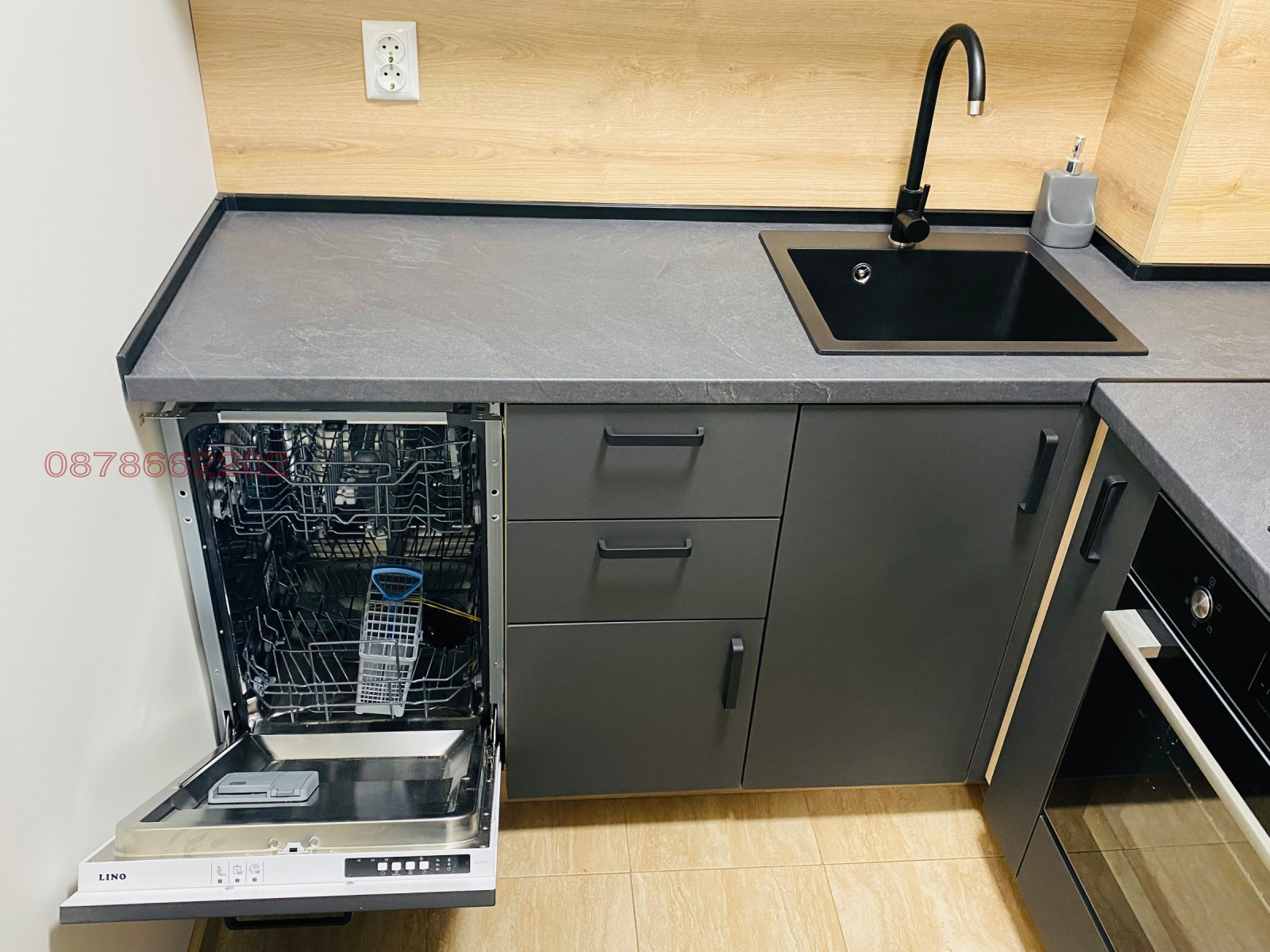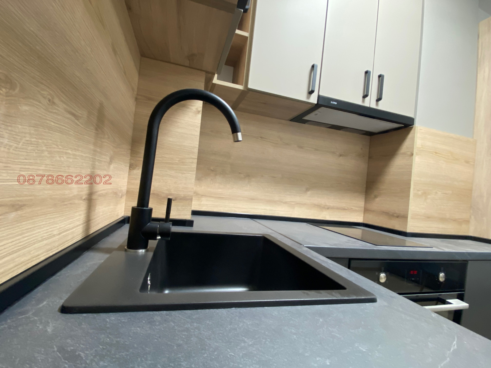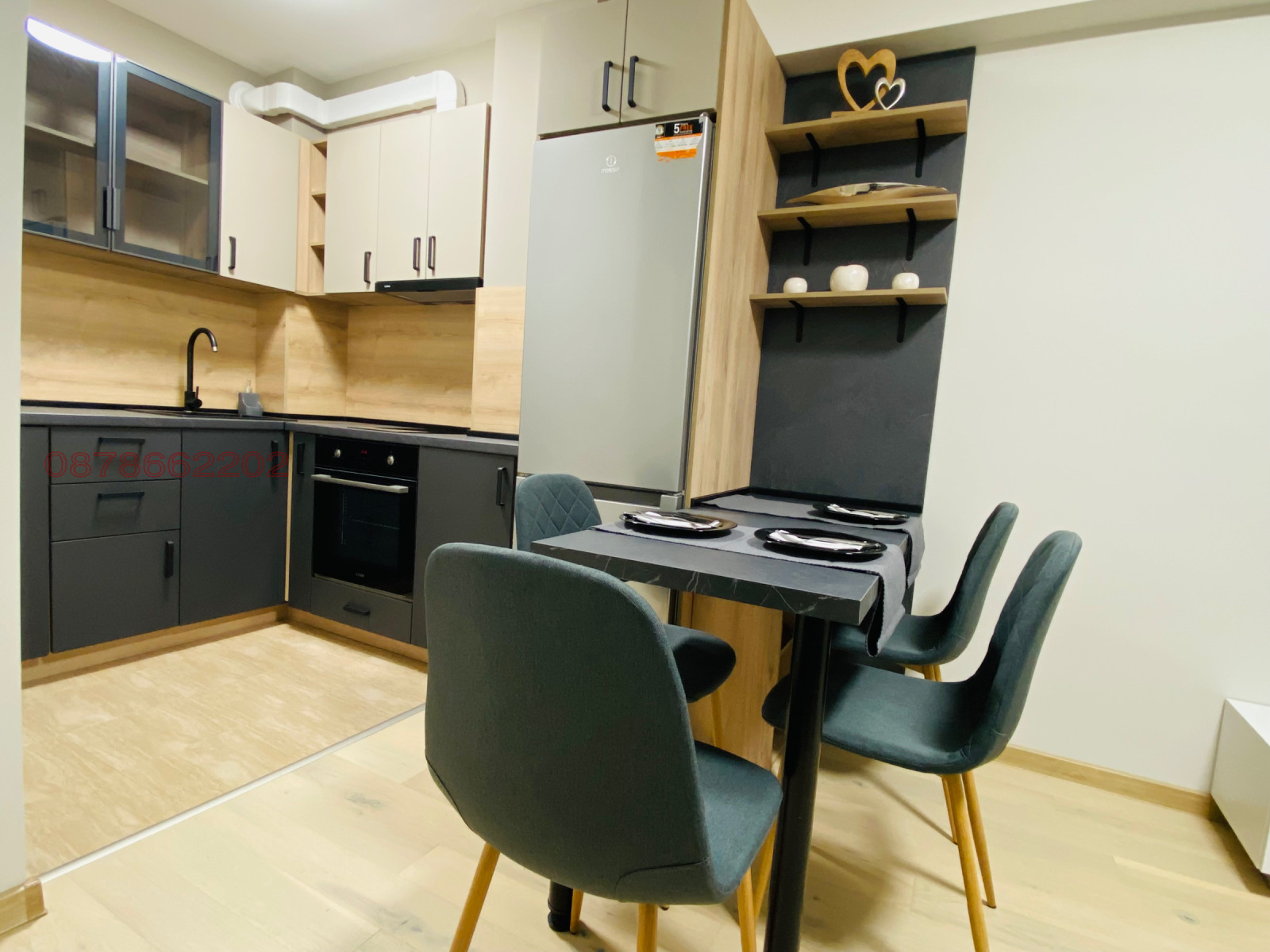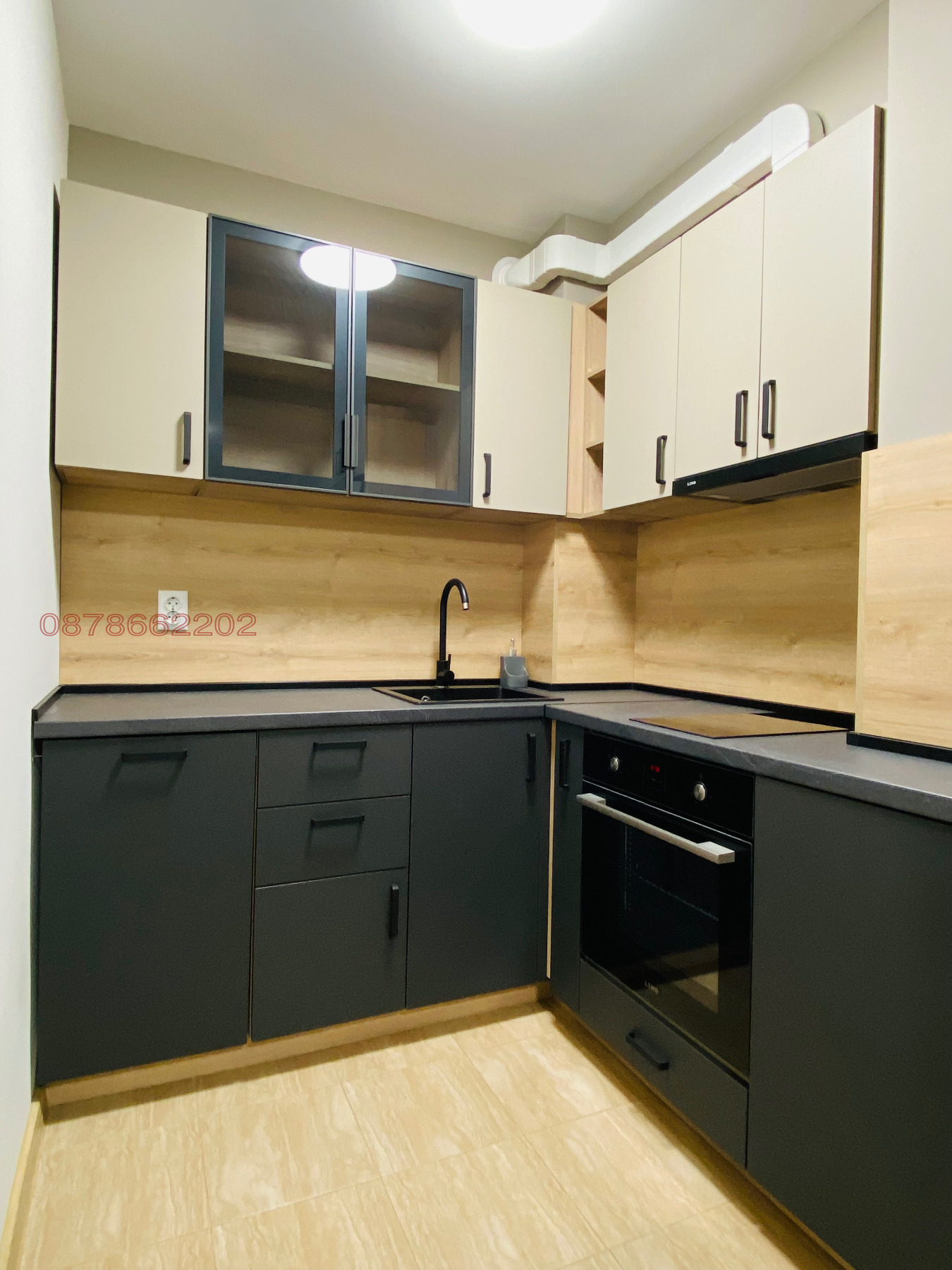 Двустаен апартамент до Музикално училище. Напълно реновиран с нова кухня, баня и мебели. Апартамента разполага с кухненски бокс, посуда, готварски принадлежности и всичко необходимо. Бокса е отворен към всекидневната, спалня, голяма баня, тераса и килер. Сградата е ново строителство с асансьор и хубави общи части.