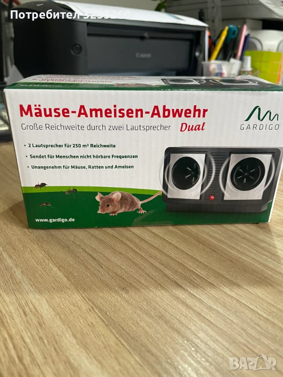 Това е машинка, която се включва в контакта и излъчва звук, който мишките не понасят.