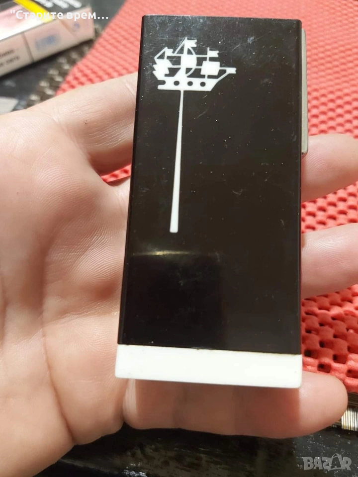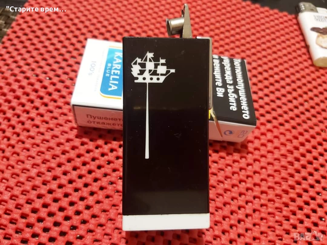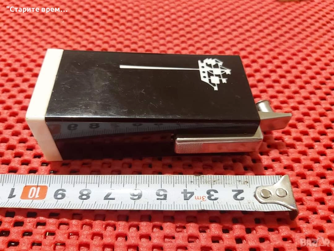 Голяма Бензинова Запалка, изработена от пластмаса тип бакелит. Запалката е с класически дизайн и колекционерска стойност, подходяща както за употреба, така и за декорация.