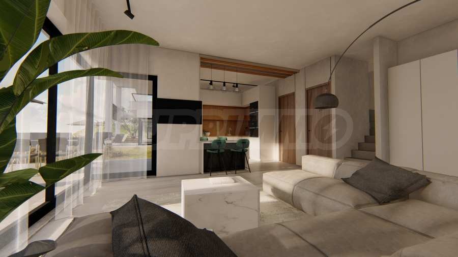 Комплексът се състои от 20 самостоятелни вили на 2 нива с площи от 85.93 кв.м до 121.17 кв.м. Фасадата е внимателно проектирана, с прави линии и декоративни елементи, придаващи модерна и в същото време непреходна визия на целия комплекс. Разпределенията включват просторни и светли всекидневни две или три спални и три бани, гарантиращи необходимото спокойствие и уединение на всички обитатели. Всички жилища се издават завършени 'до ключ', с поставени входни и интериорни врати, подови настилки, осветление, обзаведени кухни и ...