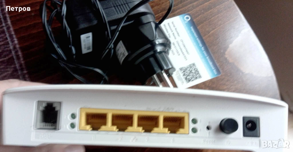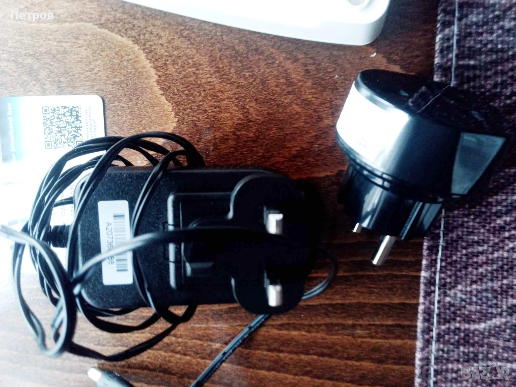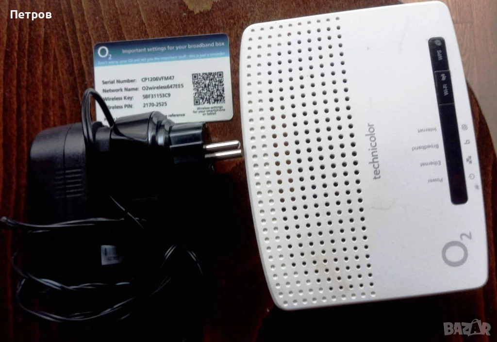 Рутер Техниколор, малко използван в Англия. Има и кабел с преходник за тамошната система и някаква карта от оператора О2.