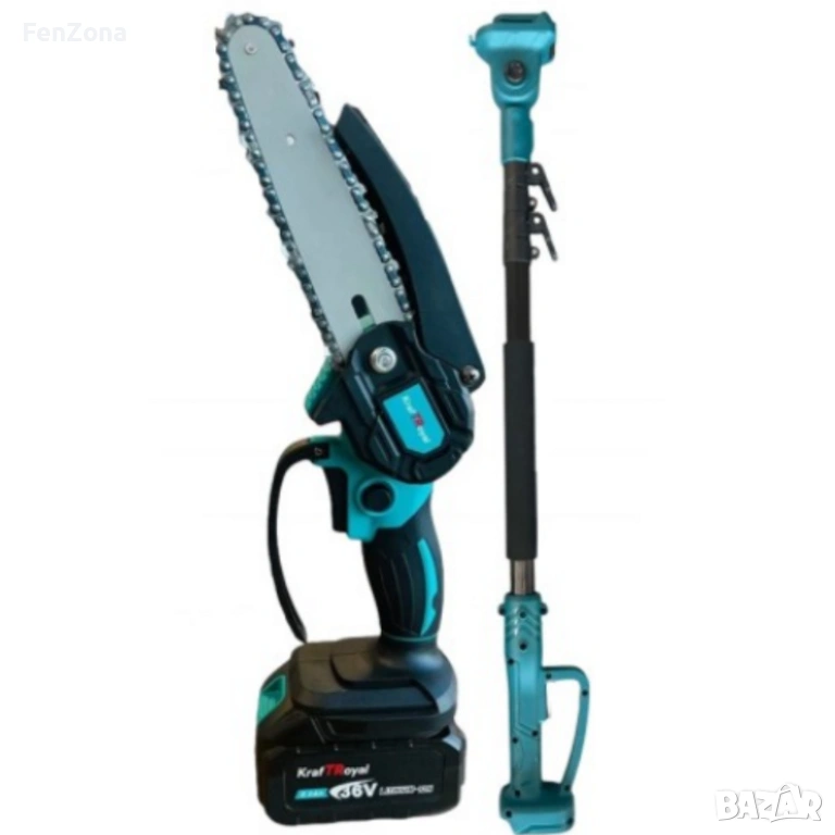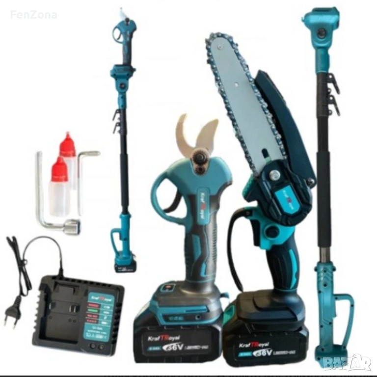 Комплект 3 в 1 от акумулаторна лозарска ножица, акумулаторен мини верижен трион и телескопичен прът