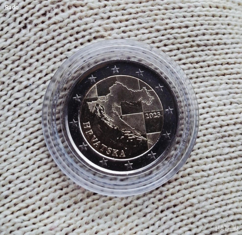 Нова Монета в защитна капсула (UNC) от 2 евро от 2023г изобразява карта (Хърватска куна) използвана в периода 1941 – 1945 година и от 30 май 1994 до 1 януари 2023 г. Дели се на 100 липа.