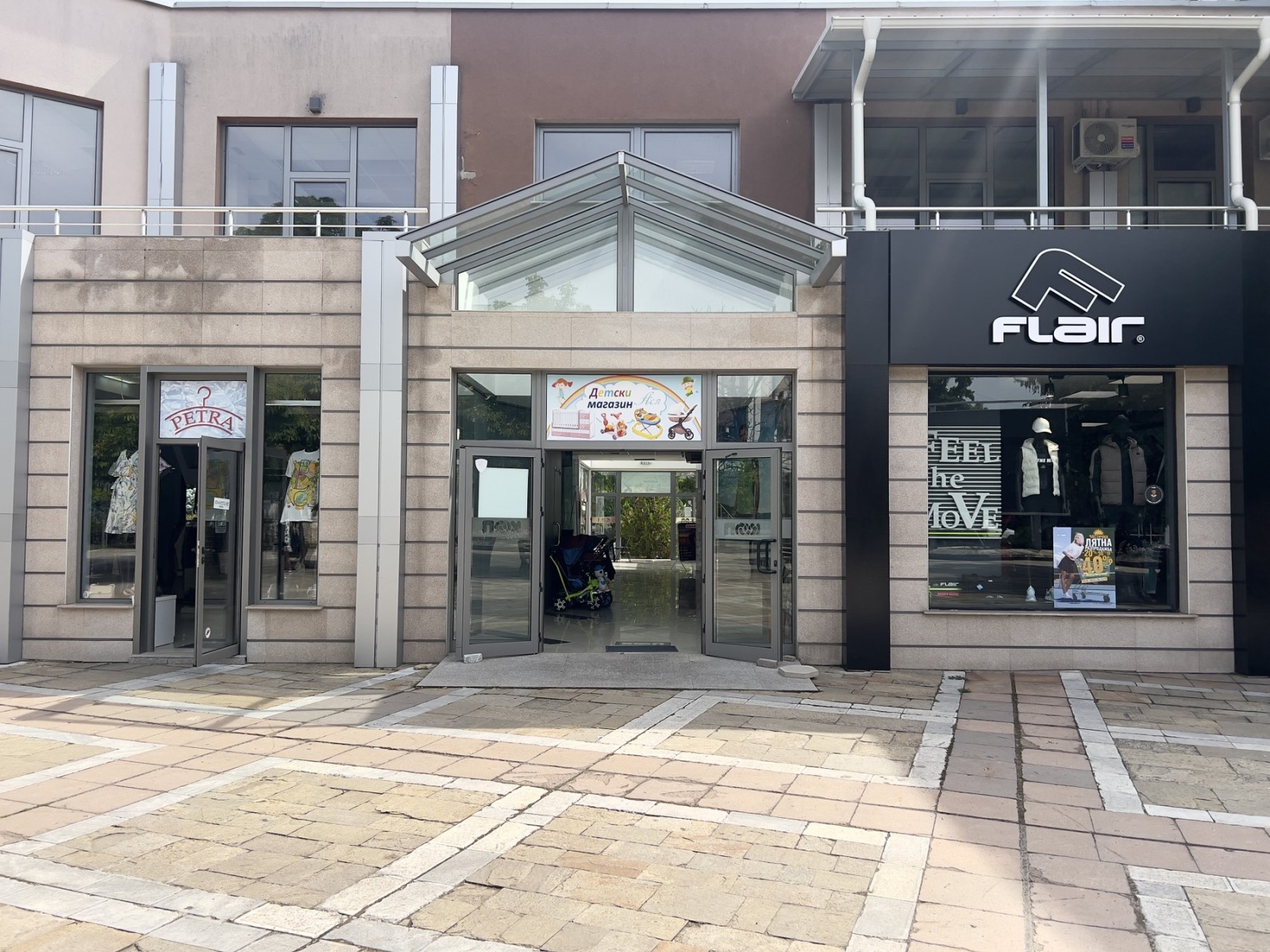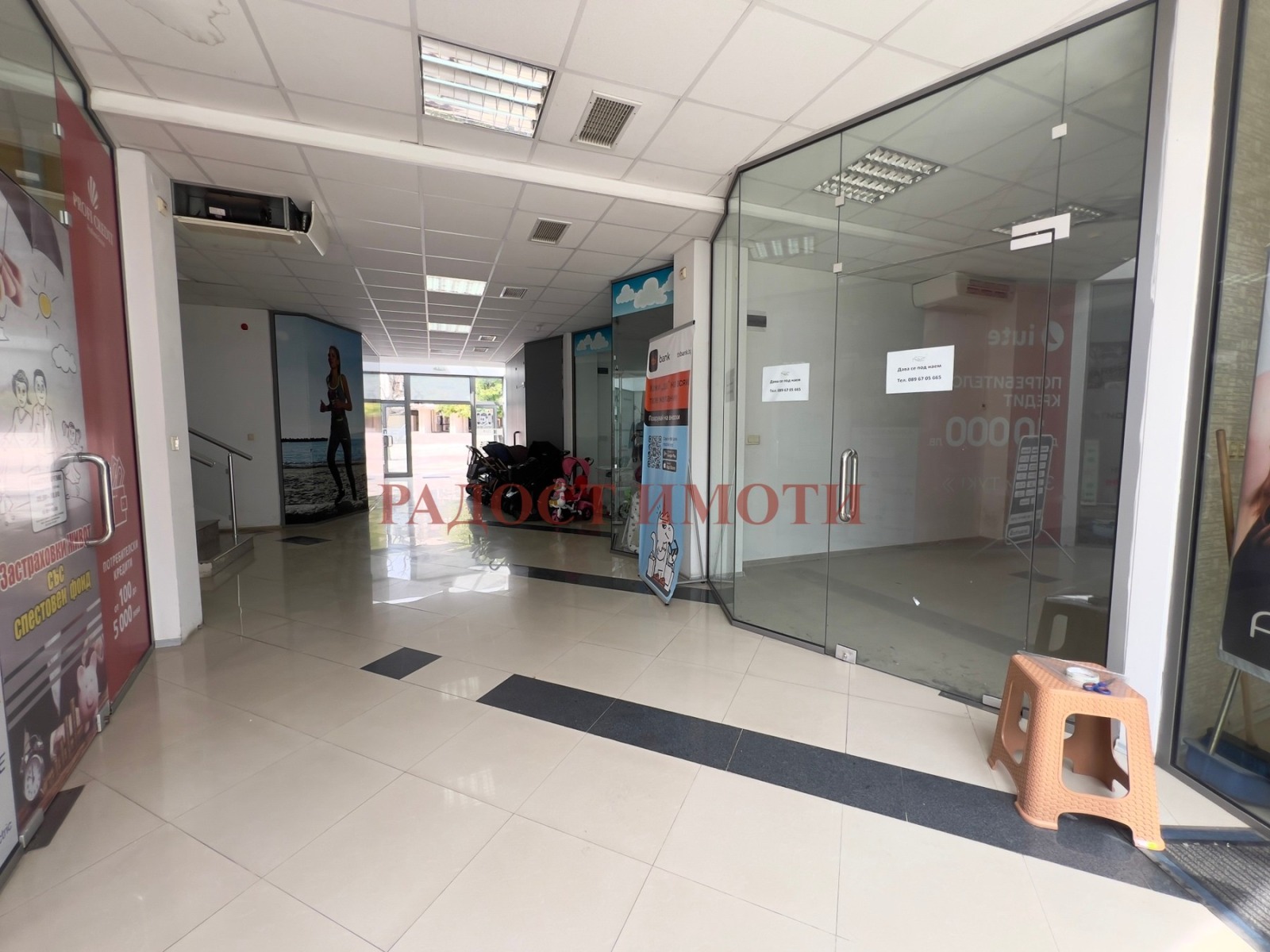 Помещението се намира на партерен етаж , във вътрешната част на търговския център, в съседство с други работещи обекти. Състои се от просторно помещение със стъклена витрина . Има общ санитарен възел в сградата.