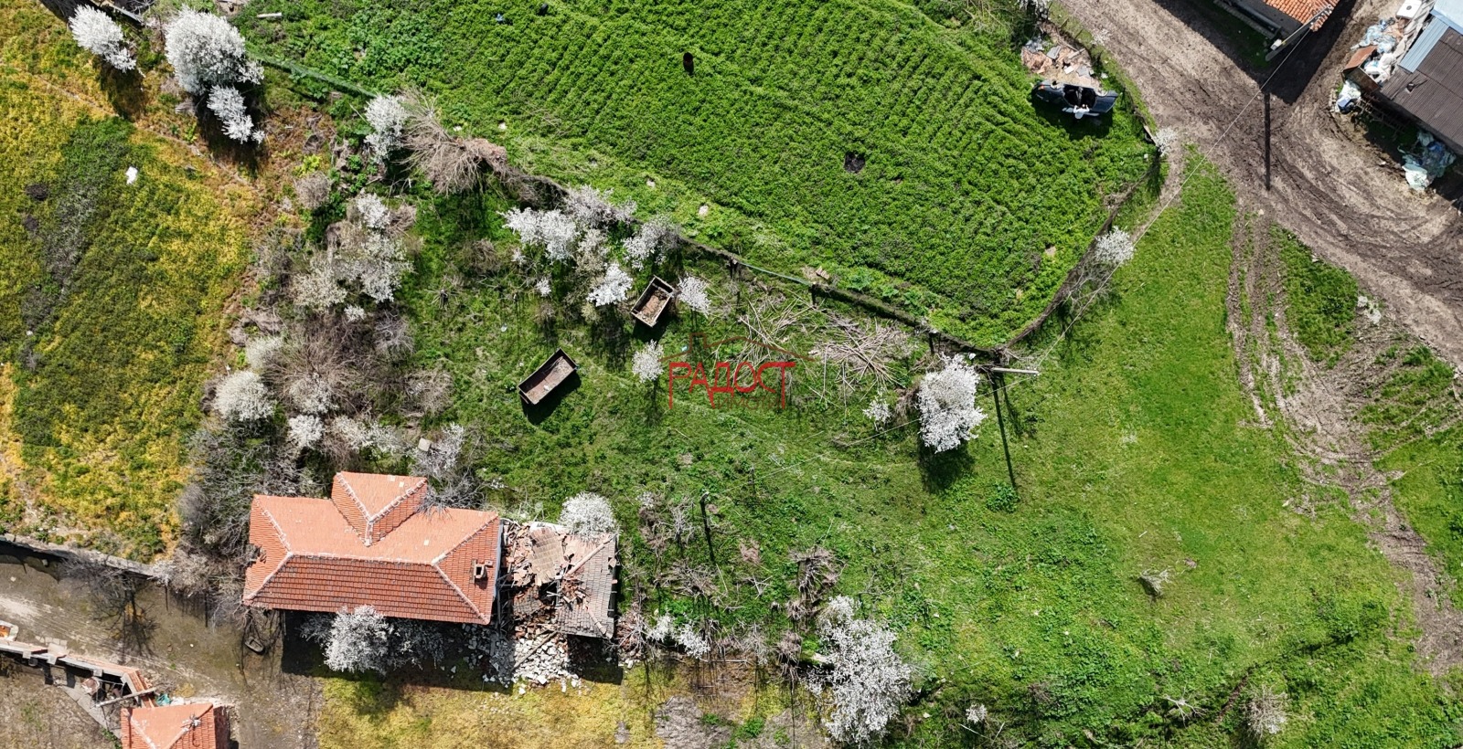 Сградата е в лошо състояние и не е подходяща за живеене или реставрация. По-скоро имотът е подходящ за събаряне и изграждане на нова къща, което го прави отлична възможност за хора, които търсят просторен парцел за нов дом или инвестиция.