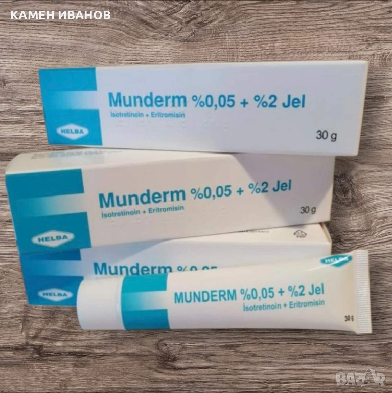 НАЛИЧНО: Munderm Gel крем е един от най-добрите кремове за акне, доказано ефективен при лечение на акне. Този крем, който премахва пъпките, които започват да се появяват в юношеството, също е много ефективен срещу възпалено и изпълнено с гной акне. Munderm гел крем, използван за лечение на акне, почиства акнето, причинено от бактерии и новообразувани акне. Този крем, който балансира масленото съотношение на мазната кожа и в същото време премахва излишното масло от повърхността на кожата и осигурява изсушаване на акнето, ефективно премахва черните петна. Изпращам със Спиди или Еконт. Годен до 03. 2027г. Телефон за поръчка: 0898331258