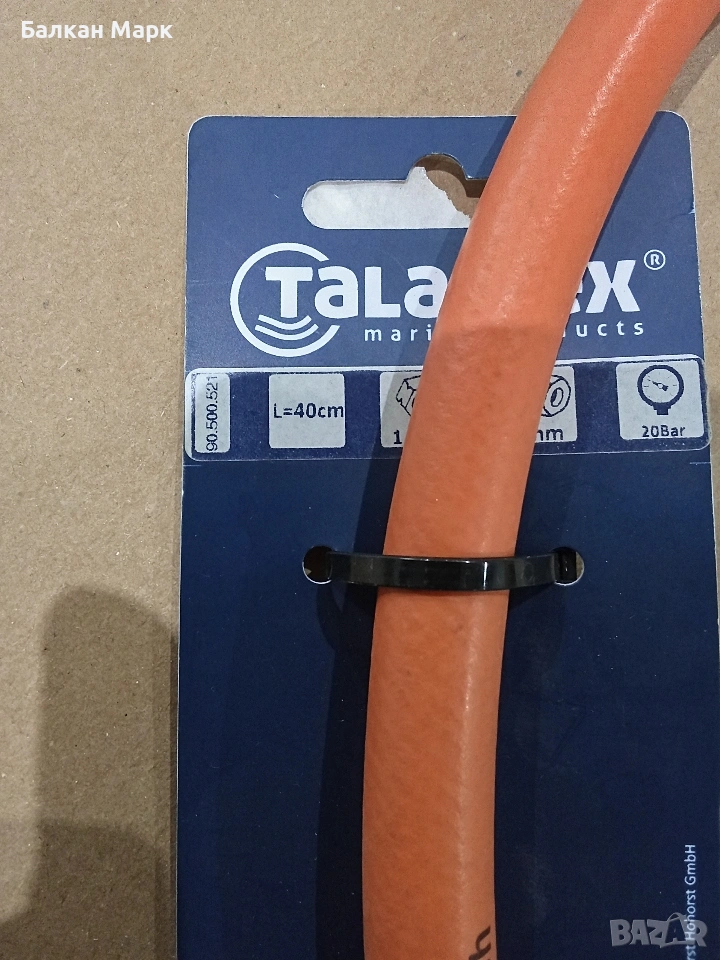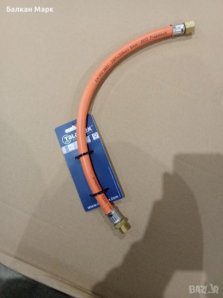 Продавам висок клас маркуч за газ (пропан-бутан) с машинно пресовани месингови накрайници. Продукт на немската марка Talamex, специализирана в оборудване за яхти и кемпери.