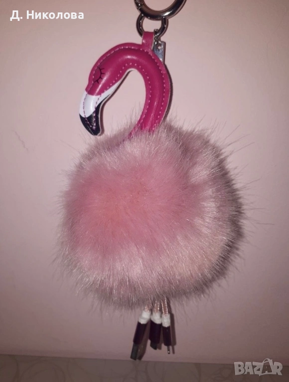 Многофункционален ключодържател във формата на фламинго с USB порт, кабели за зареждане на Android и iPhone.