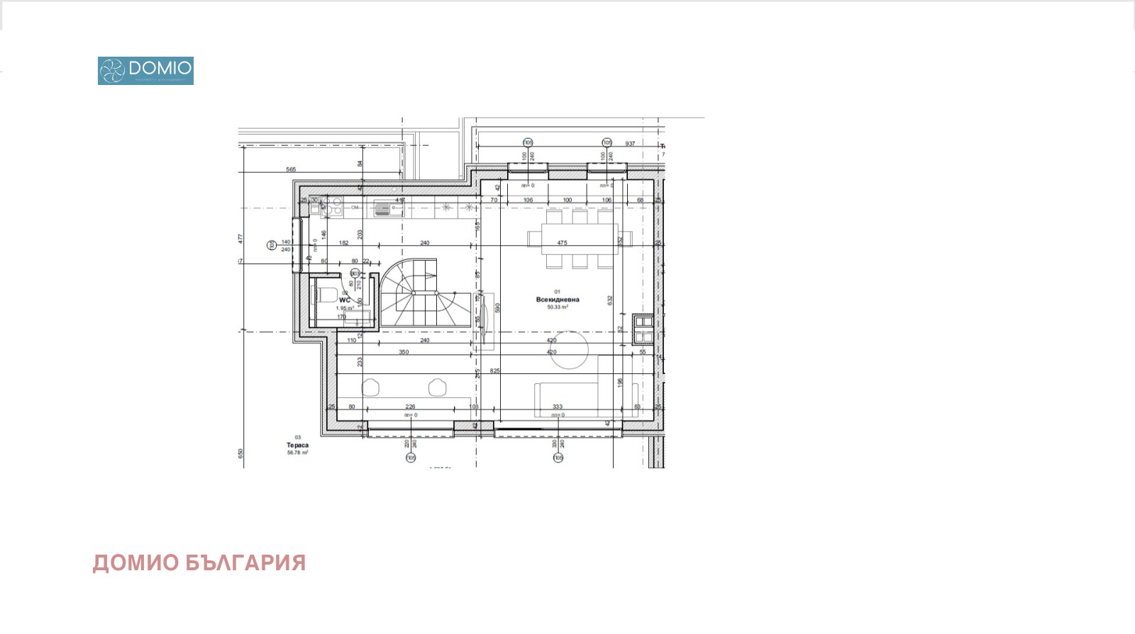 DOMIO предлага ексклузивно за продажба Апартамент тип мезонет с две спални с покривна тераса, разположен в нова бутикова жилищна сграда с 8 апартамента и модерен архитектурен облик.