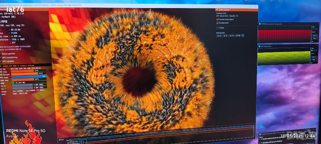 Видеокарта Inno3D Geforce 3080Ti X3, сменени вентилатори. Вентилаторите са включени на 12в постоянно.
