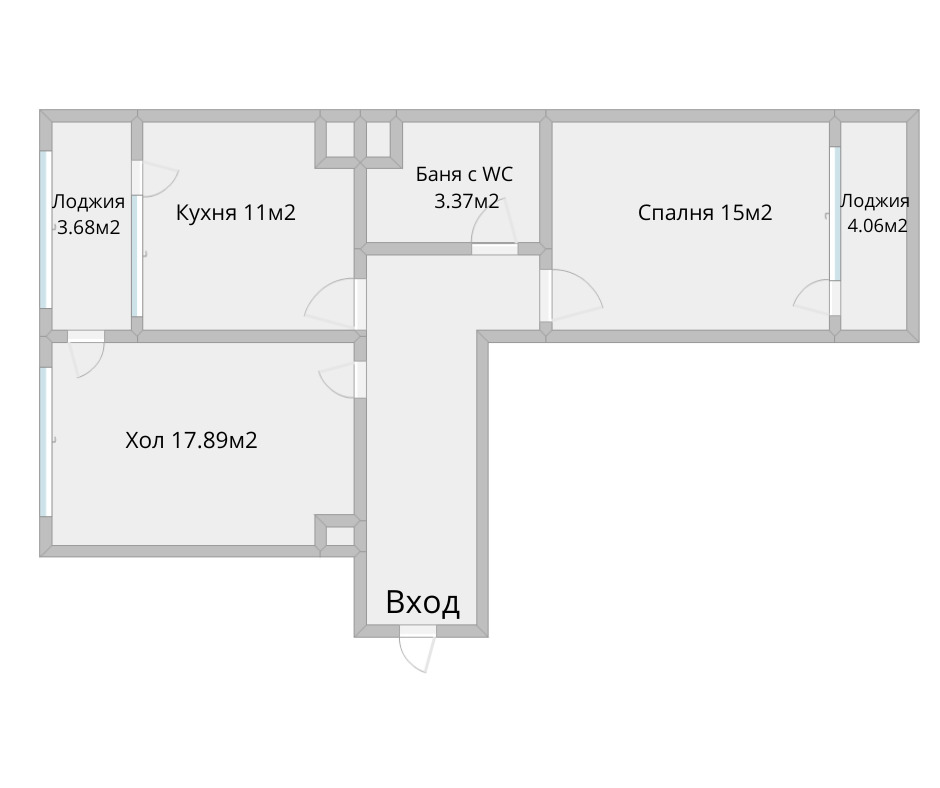 Апартаментът е със застроена площ от 65.5 кв.м. и се състои от просторна дневна и кухня с излаз към лоджия. Двете помещения са със западно изложение и гледка към парк 'Въртопо'. Спалня с излаз на тераса и източно изложение и баня с тоалетна. Входното антре е с вграден гардероб, което създава възможности за допълнително пространство. Дограмата навсякъде е сменена с PVC, а балконът към кухнята е остъклен.