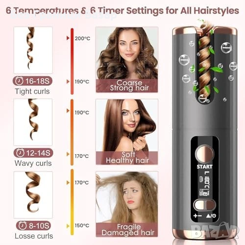 Нова Автоматична маша за къдрици коса жени прическа безжична Type-C 6 температури