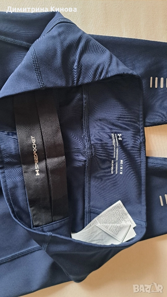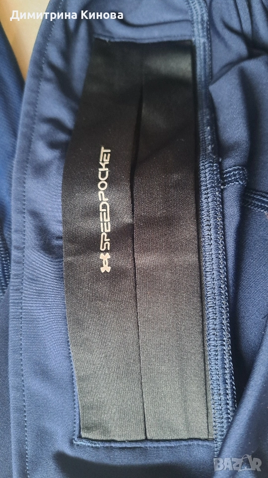 тъмносин спортен клин на марката Under Armour от серията HeatGear. Клинът разполага с технологията Speedpocket – специален водоустойчив джоб в предната част на колана, предназначен за сигурно съхранение на телефон по време на бягане Основни характеристики: Материя HeatGear®: Лека и дишаща материя, която отвежда потта и изсъхва бързо, подходяща за интензивни тренировки. UA Speedpocket: Разположен в колана, този джоб е разтеглив и предпазва вещите ви от подскачане и намокряне. Компресия (Compression): Моделът е с прилепнала кройка тип "втора кожа", която подпомага мускулите