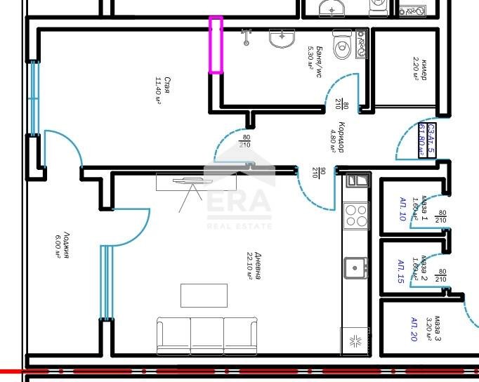 ЕRA Парадайс Ви предлага за продажба двустаен, южен, стилно обзаведен и оборудван апартамент в нова сграда (завършена с Акт 15) в м-т Пчелина, до Възраждане 3, гр. Варна. Имотът е със застроена площ 61.8 кв. м (79 кв. м с общите части), разположен на първи (партерен) етаж от общо 4 етажа в сградата. Разпределението е следното: просторна дневна с кухненски бокс (22.10 кв. м), самостоятелна спалня (11.40 кв. м), голяма баня с тоалетна (5.30 кв. м), килер (2.20 кв. м), коридор (4.80 кв. м). От дневната и спалнята се излиза на балкон тип 'лоджия' - с площ 6 кв. м. Изложението е изцяло южно. Статутът е на ателие.