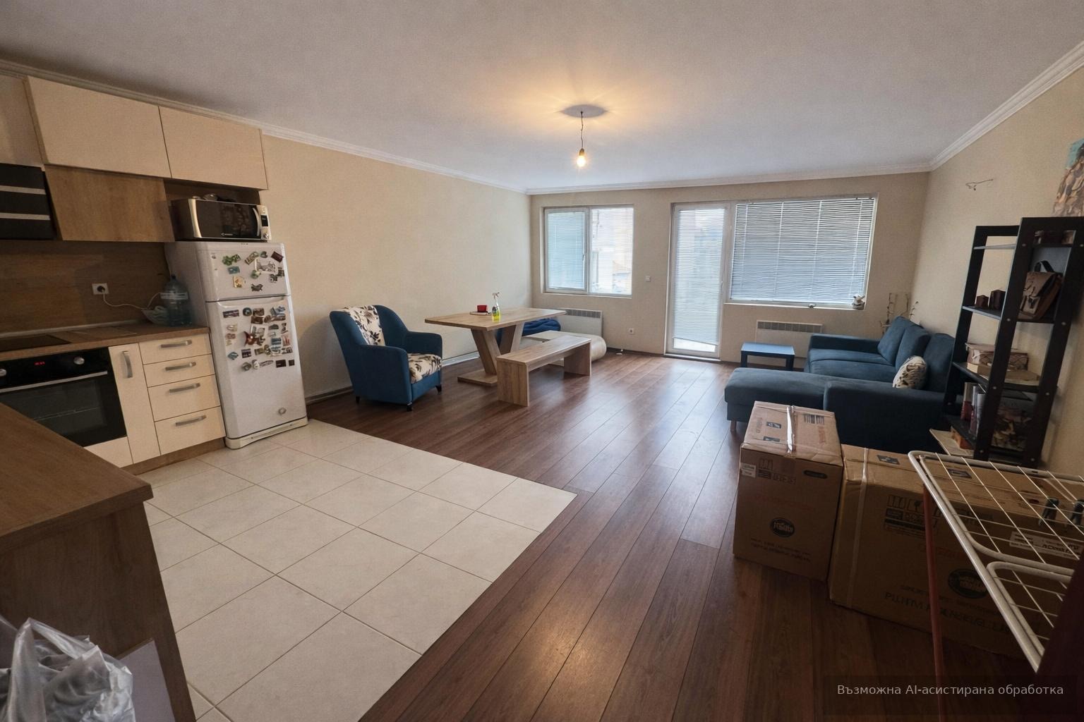 Жилището с площ 110 кв.м се намира на 3-и етаж от нова шестетажна сграда и е с източно изложение. Разпределението включва входно антре, баня с тоалетна, отделна тоалетна, две спални, просторен хол с кухненски кът и две тераси.