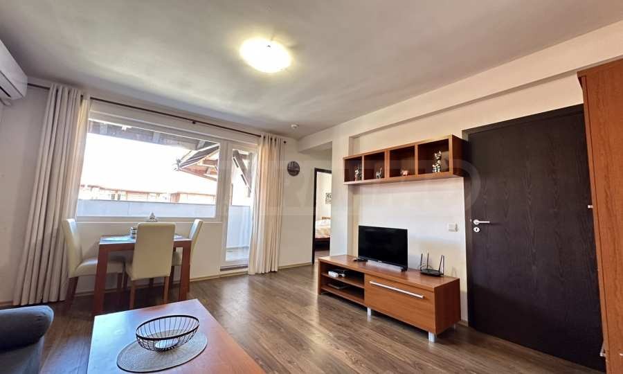 Прекрасно предложение от пазара за недвижими имоти продажба на обзаведен двустаен апартамент с великолепни изгледи към Пирин Планина в затворен комплекс Банско Роял Тауърс / Bansko Royal Towers с 5 000 м2 поляна с детски кът и външен басейн, на 100 метра от кабинковия лифт.