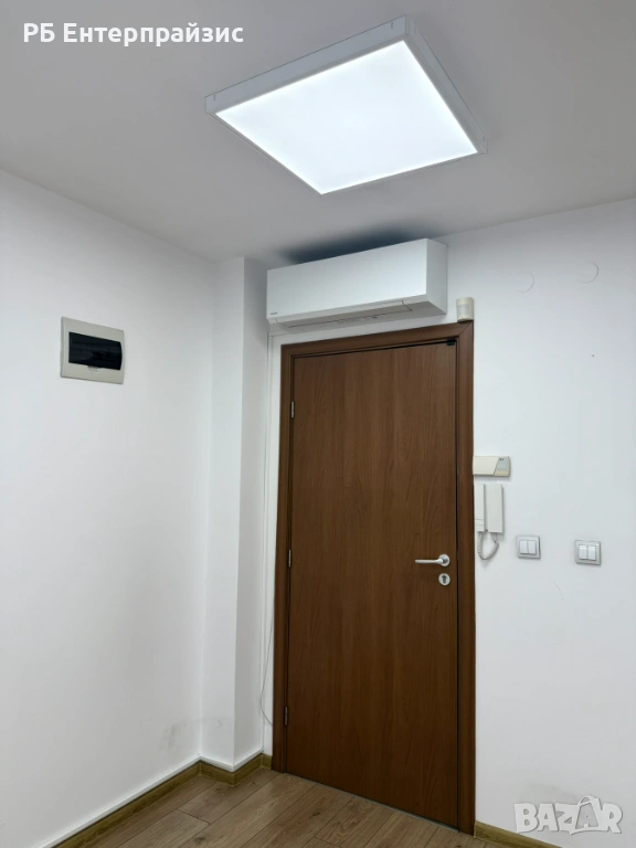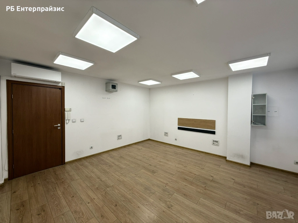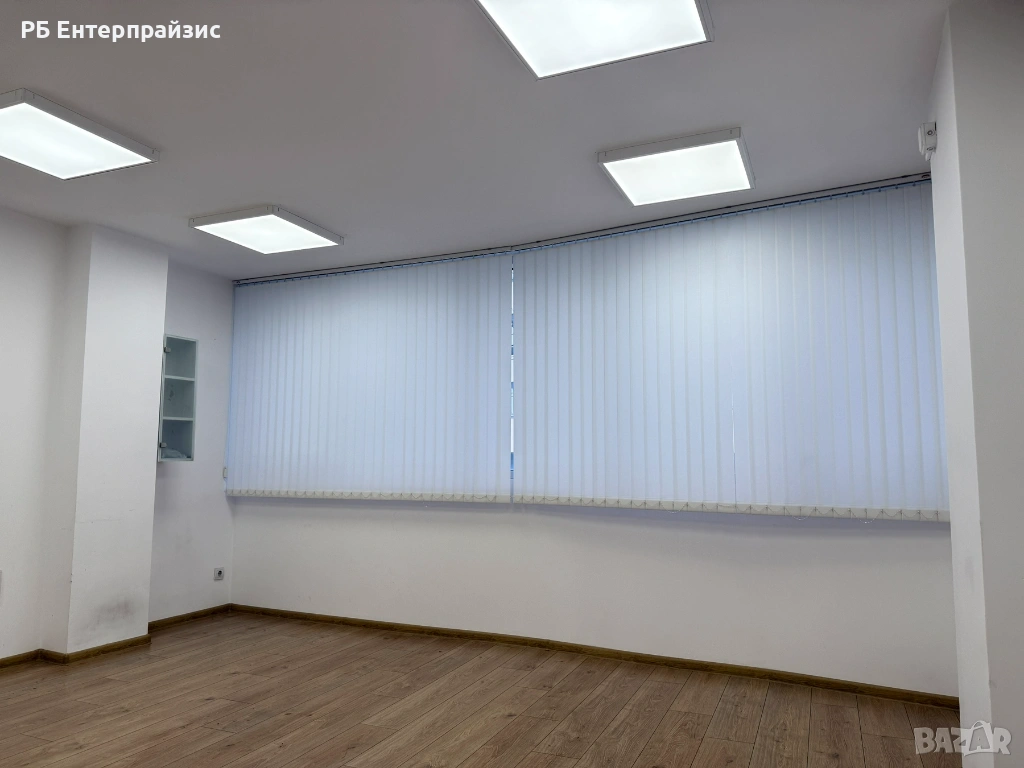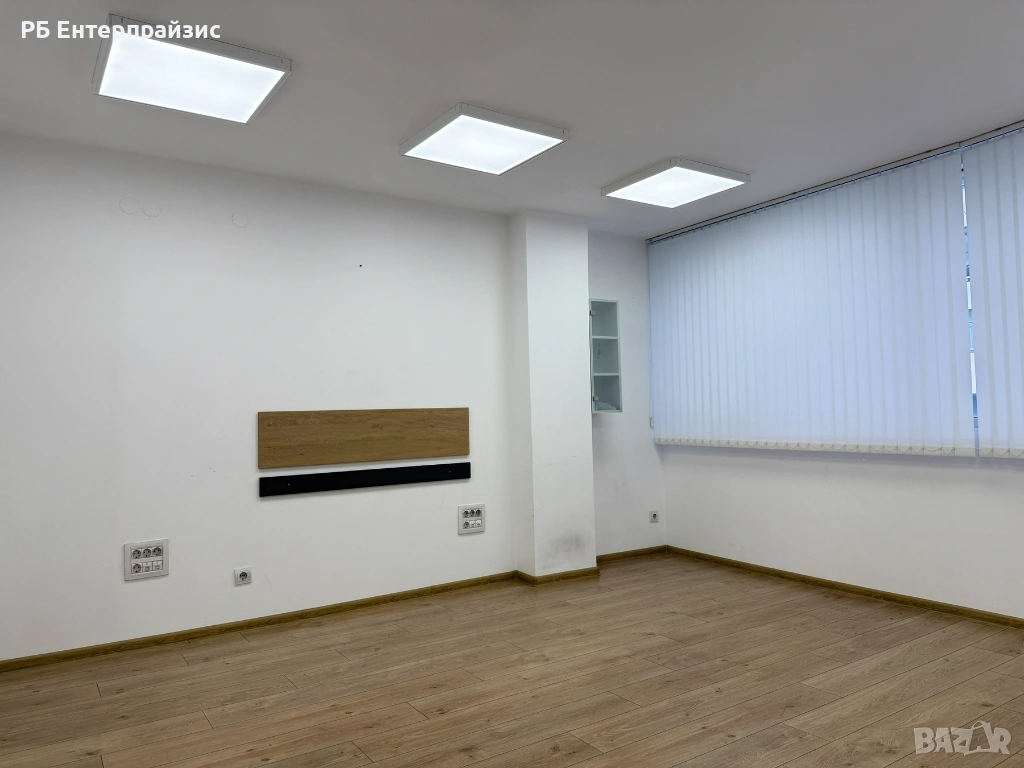 Помещението е НЕобзаведено, със стени, боядисани в бял латекс. Подовата настилка в основното помещение е ламинат. Офисът разполага с монтирани осветителни тела, една врата с брава, щори и индивидуален електромер, който се намира в електромерното табло на етажа. Има климатик, който служи за охлаждане и отопление на помещението. На всеки етаж има по два общи санитарни възела.