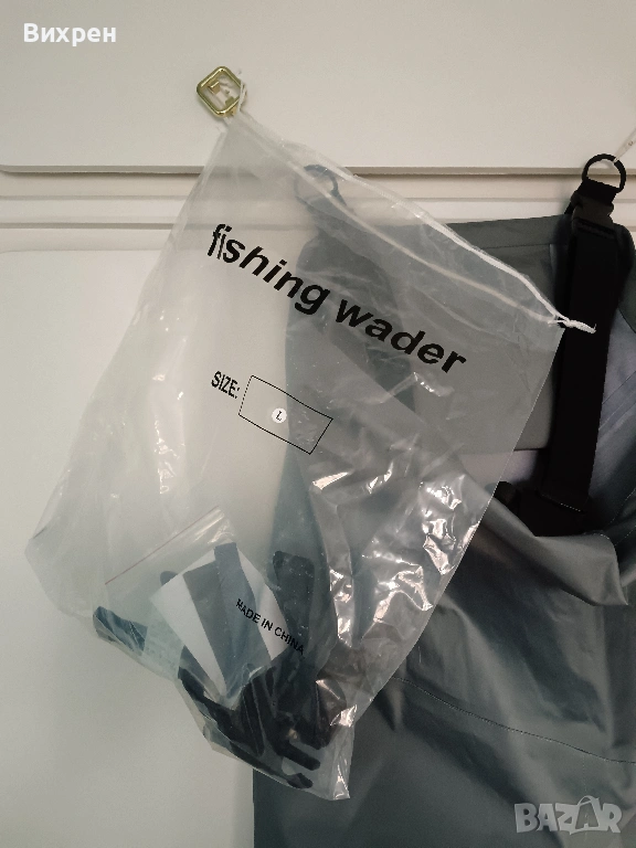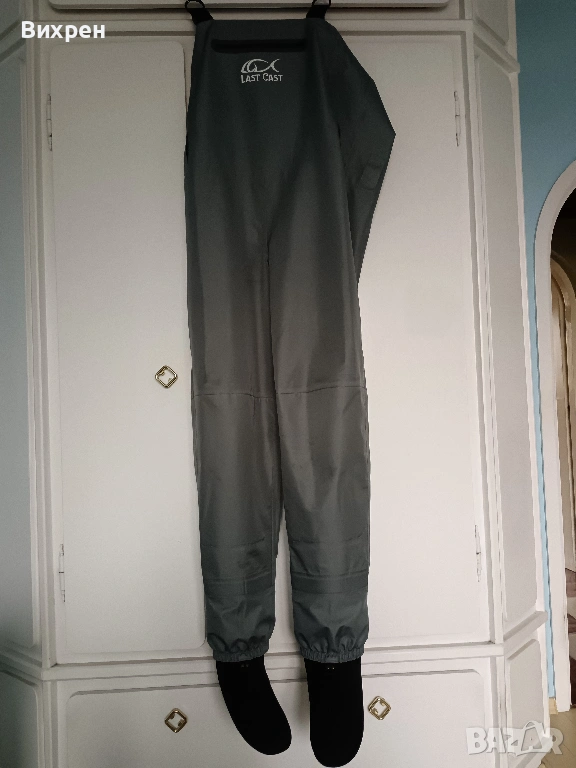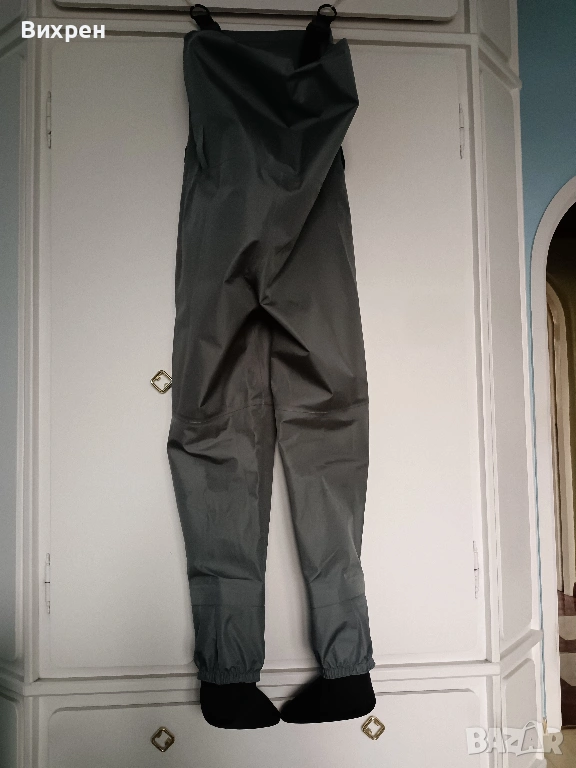 2. Гащеризон Last Cast L 43/44. Обличан няколко пъти с високи термо чорапи и панталон, така че тъканта е напълно чиста от вътрешната страна. Над чорапа съм слагал друг неопренов чорап, с идеята да намаля износването от нормално носене и камъчета. Като допълнителна защита съм слагал и туристически гети, които хем да намалят влизането на камъчета, хем и да предпазят долната част на крачола от протъркване в растителност и драки. Тоест пазен е повече от необходимото. Изпран е с хладка вода и отвън, и отвътре, като винаги е сушен на проветриво място без достъп на пряка слънчева светлина. Изсъхва напълно за 24 часа при стайна температура 15-17 градуса.