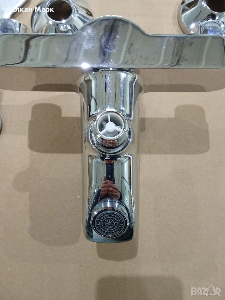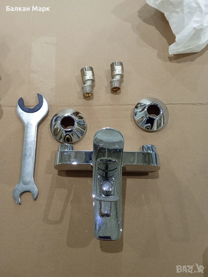 Забележка: Смесителят вероятно е бил мострен или монтиран за кратко. Има следи от котлен камък по единия ексцентрик (видно на снимките). Самият смесител няма котлен камък, но има множество фини, видими драскотини по корпуса. Цената е съобразена със състоянието – продуктът не е подходящ за перфекционисти.