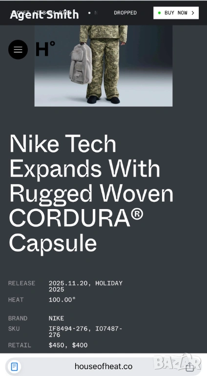 Оригинален камуфлажен панталон Nike Tech от кордура.