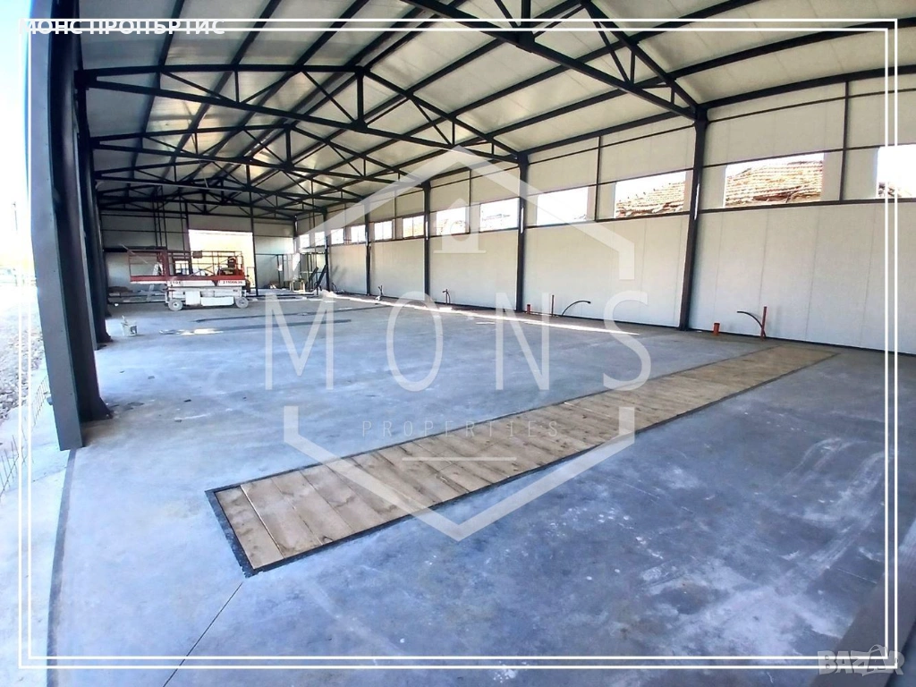 Пространството е гъвкаво и функционално, с възможност за обособяване на различни зони – складови помещения, производствена част или офис пространство, в зависимост от нуждите на бизнеса.