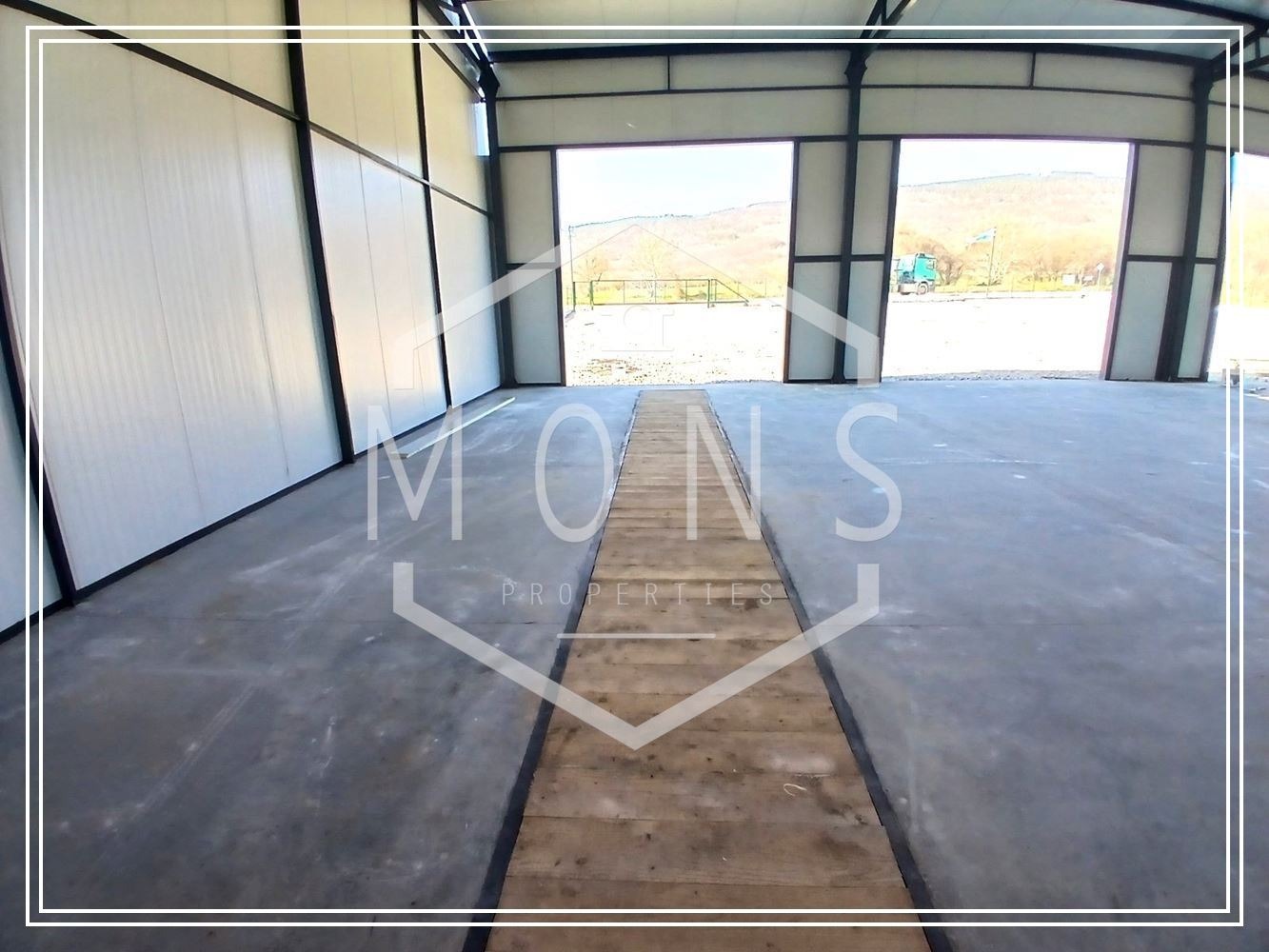 Пространството е гъвкаво и функционално, с възможност за обособяване на различни зони складови помещения, производствена част или офис пространство, в зависимост от нуждите на бизнеса.