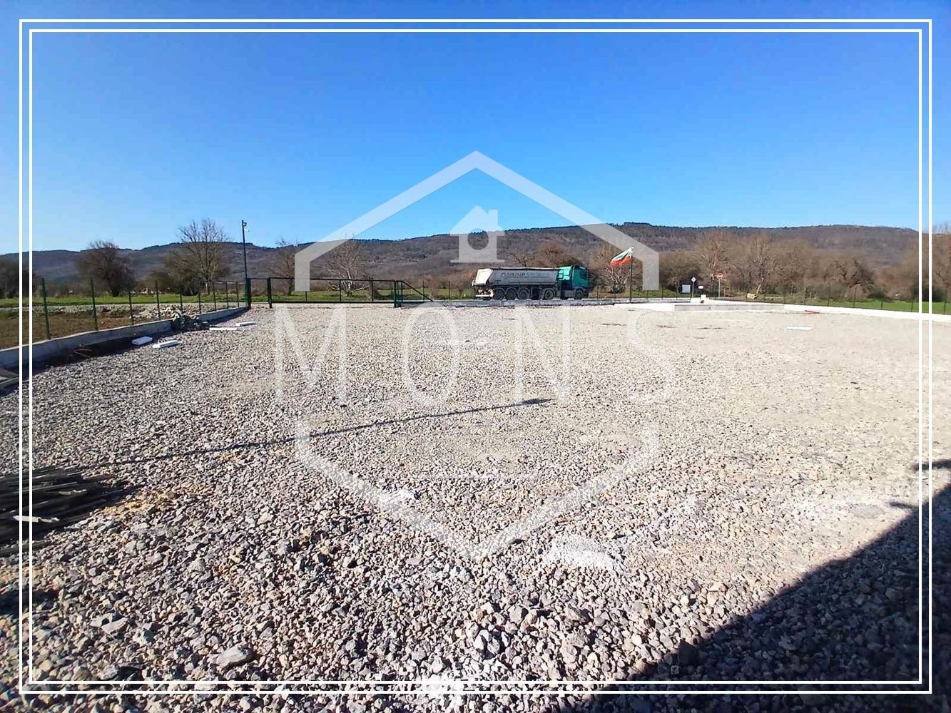 Достъпът до имота е по асфалтов път, осигуряващ удобен подход за бусове и товарни автомобили.