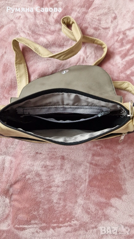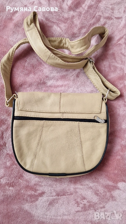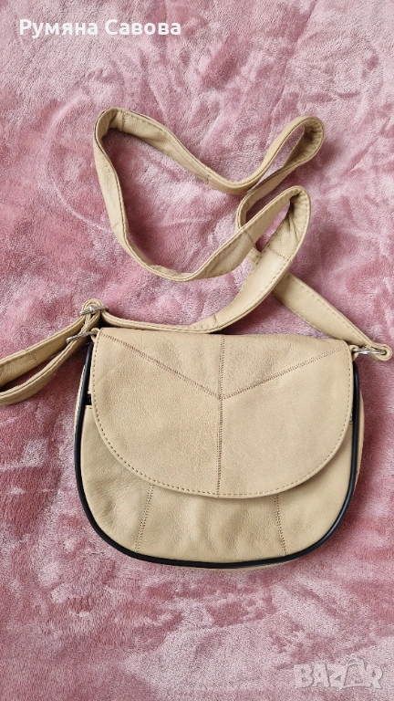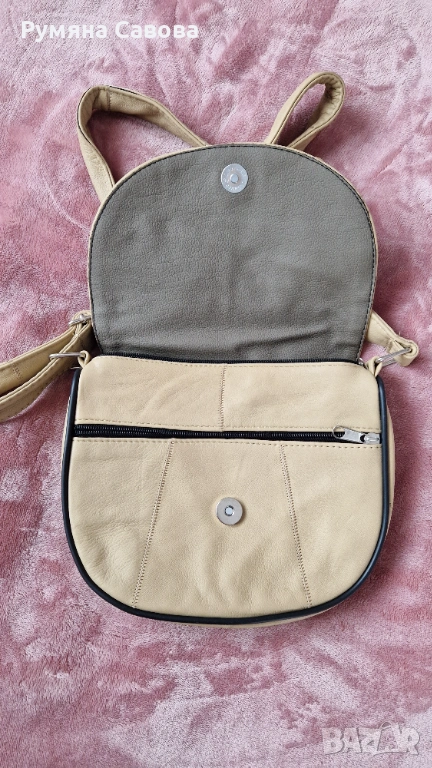 Продавам бежова чанта за през рамо от естествена кожа. 22см/18см/7см