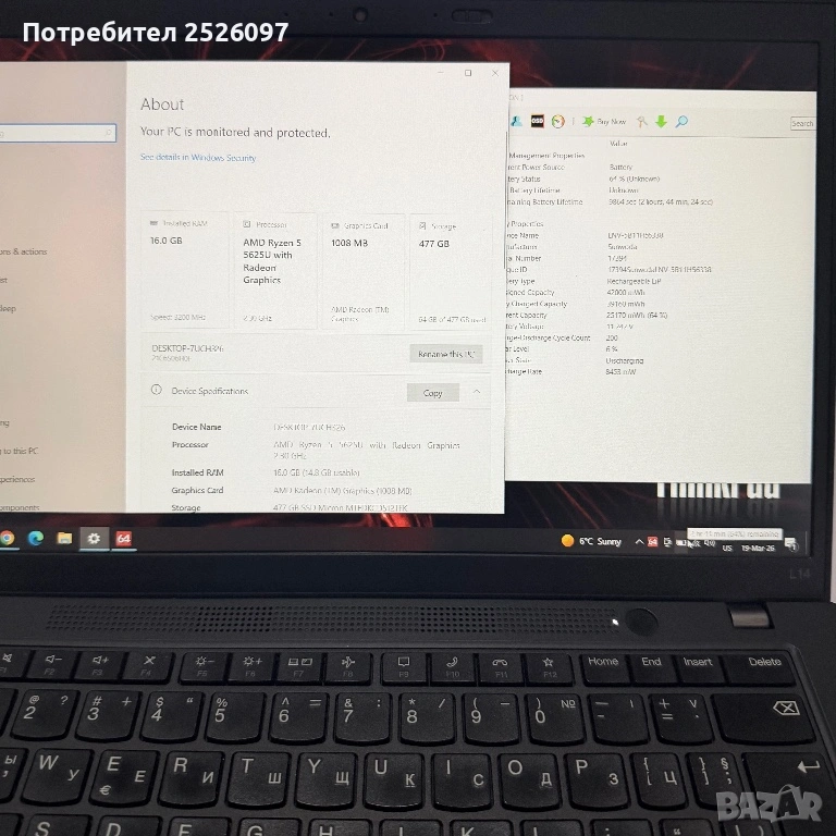 Lenovo ThinkPad L14 Gen 3/IPS/Ryzen 5 5625U 16MB/512GB NVMe/16GB RAM → Обява 54052257