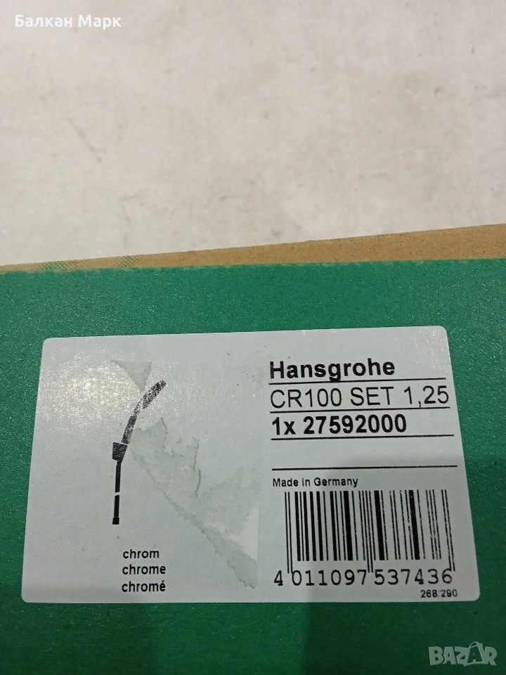 Продавам чисто нов душ комплект на немския лидер Hansgrohe, модел Crometta 100 Vario. Продуктът е част от разнообразна стока, внесена от Германия.