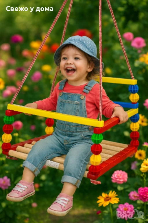 Дървена люлка – Класически модел с модерен цветен дизайн → Обява 54052688