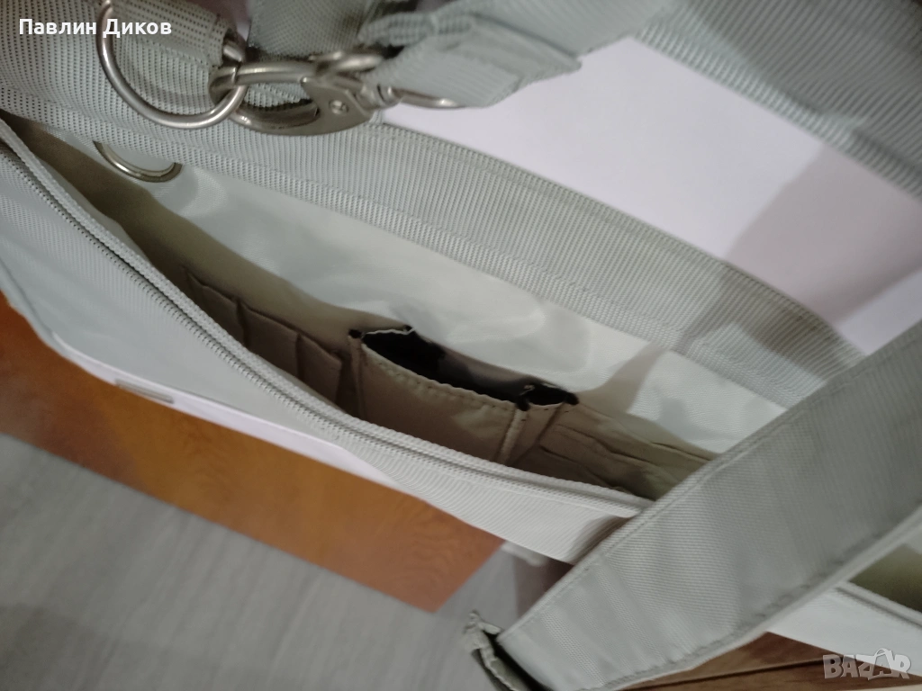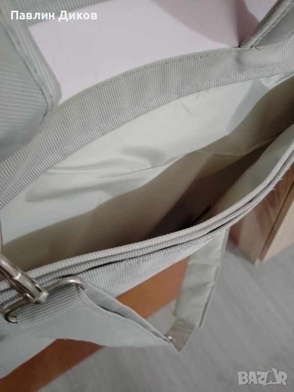 За лаптоп ,с много отделения ,много удобна .Ползвана няколко пъти,предлага се на символична цена поради смяна на размера лаптоп.