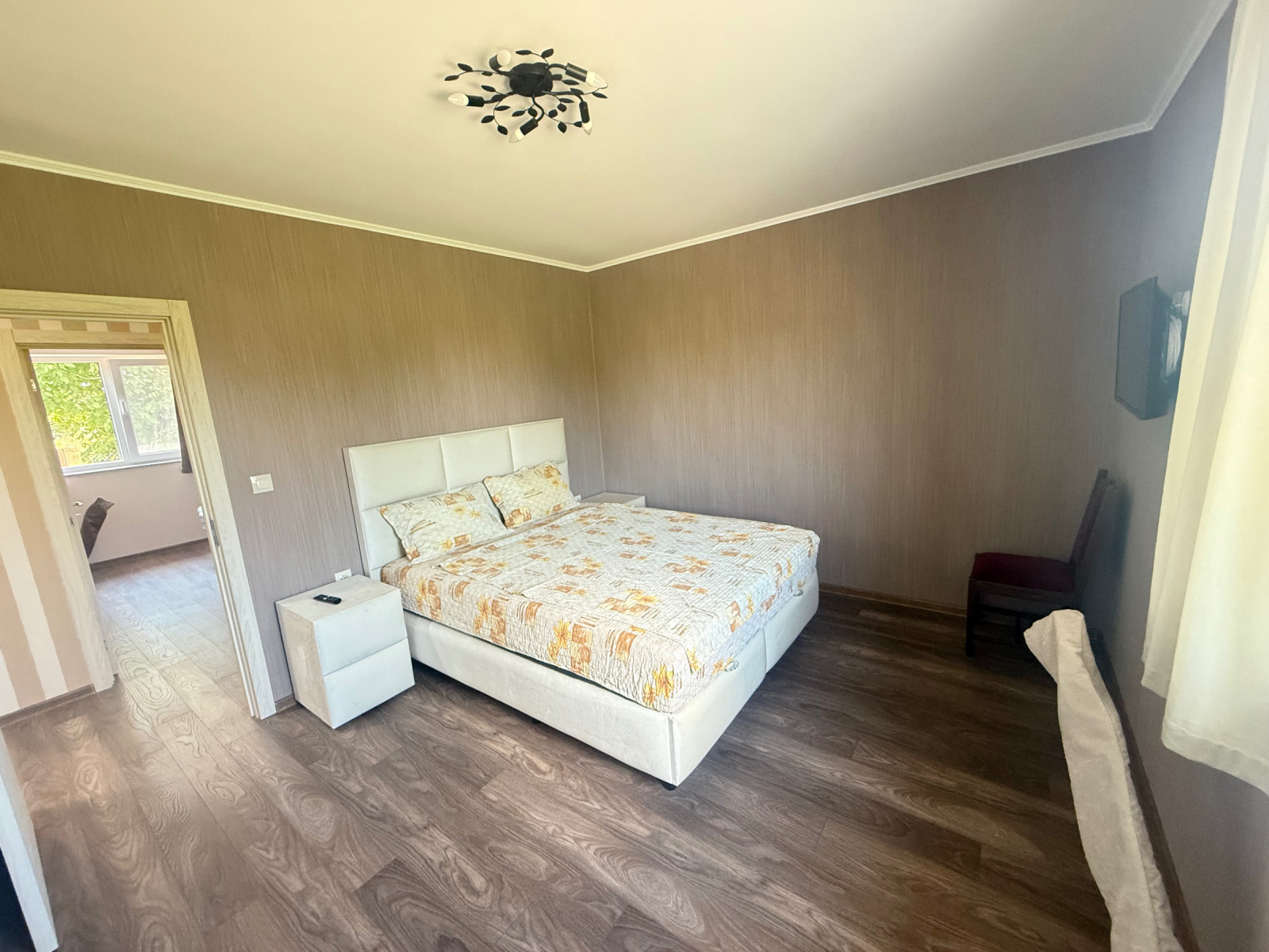 Къщата разполага с 5 стаи, включително 3 спални и 2 бани, което я прави подходяща за по-големи семейства или за хора, които ценят пространството. Интериорът е обзаведен с внимание към детайла, съчетавайки съвременен стил и функционалност. Просторната дневна е идеална за семейни събирания, а кухнята предлага всичко необходимо за приготвяне на вкусни ястия.