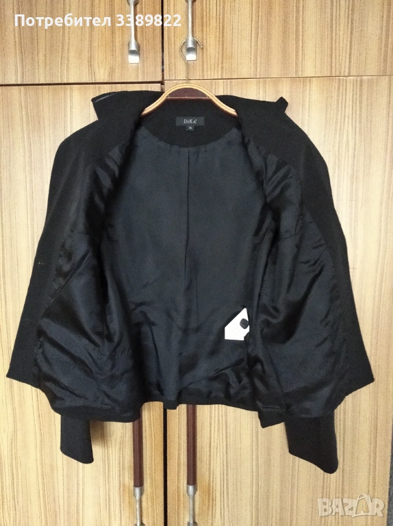 Сако - два външни джоба - имитация, с подплънки на раменете, закопчава се с копчета, има резервно копче, цялата дължина от рамото до долу е около 56см, дължина на ръкава от рамото до долу 61см, гръдна обиколка едностранно около 41см.