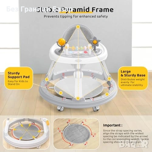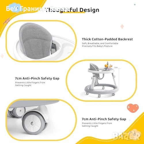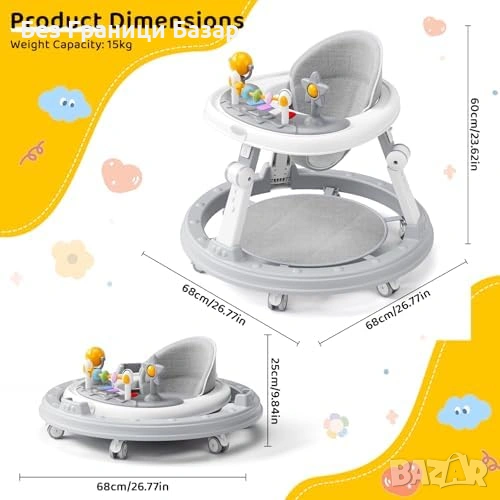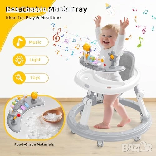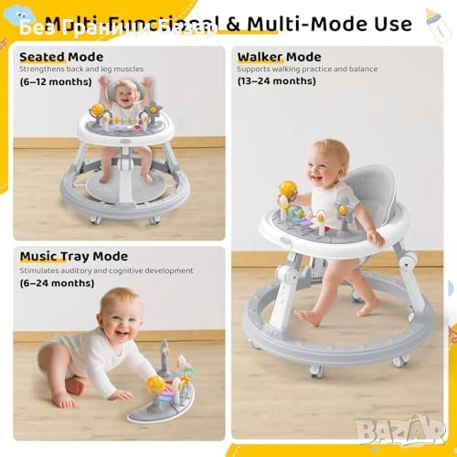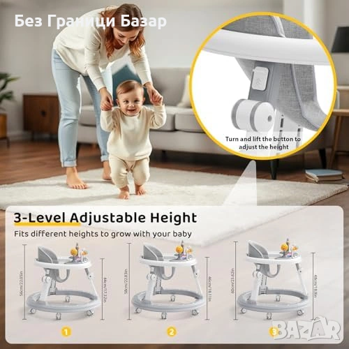 Нова Проходилка за бебе с табла колелца регулируема височина 6+ месеца