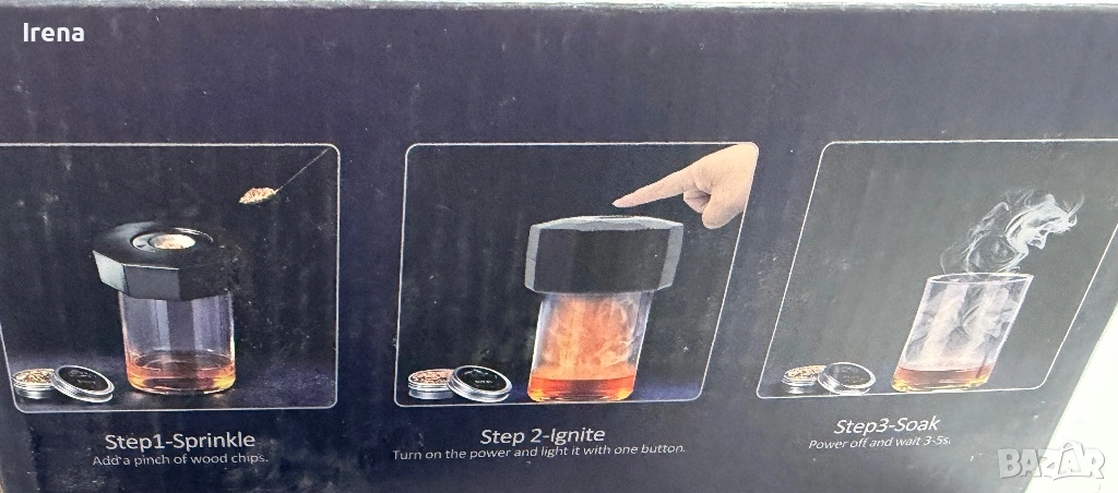 Лесен за употреба: Просто добавяте щипка стърготини, поставяте върху чашата и включвате. Гъстият ароматен дим изпълва чашата за секунди.
