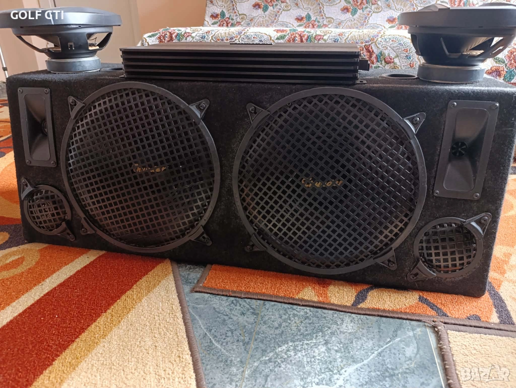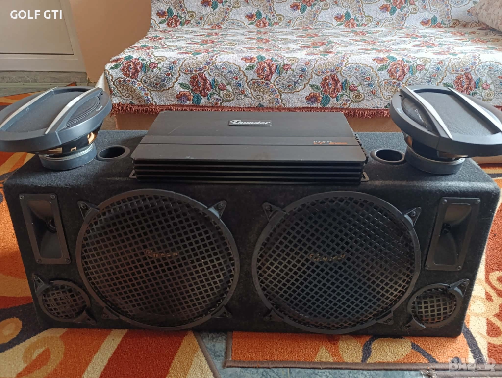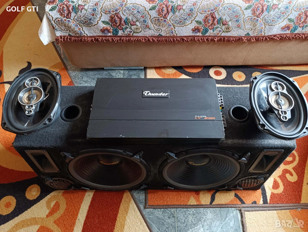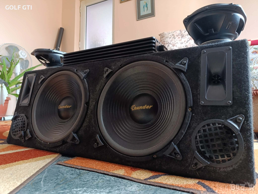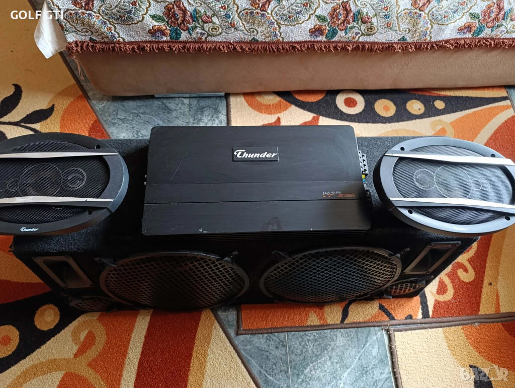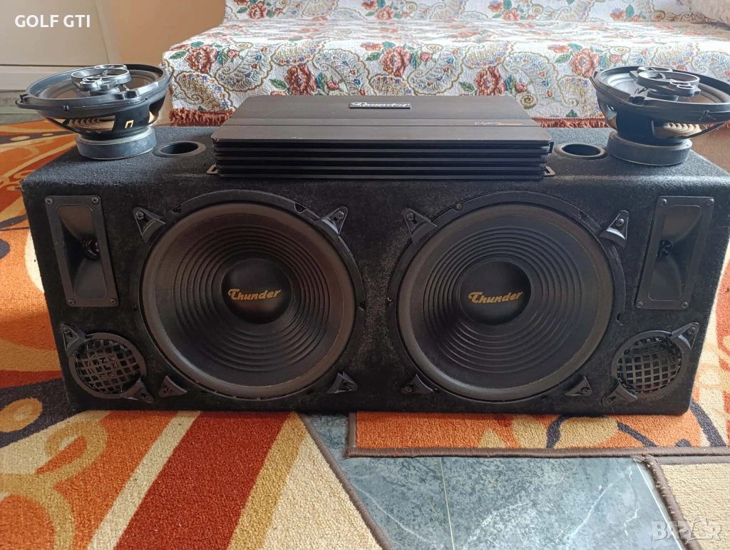 Продава се горе посоченият автокомплект от автобас каса 2х12 инча трилентова с бас среда и висока на марката Thunder , мощен 4-канален автоусилвател на същата марка Thunder , и качествени елипси на същата марка всичко е в добро техническо състояние, работещо отлично , със външни следи от употреба , ето и повече инфо за тях: