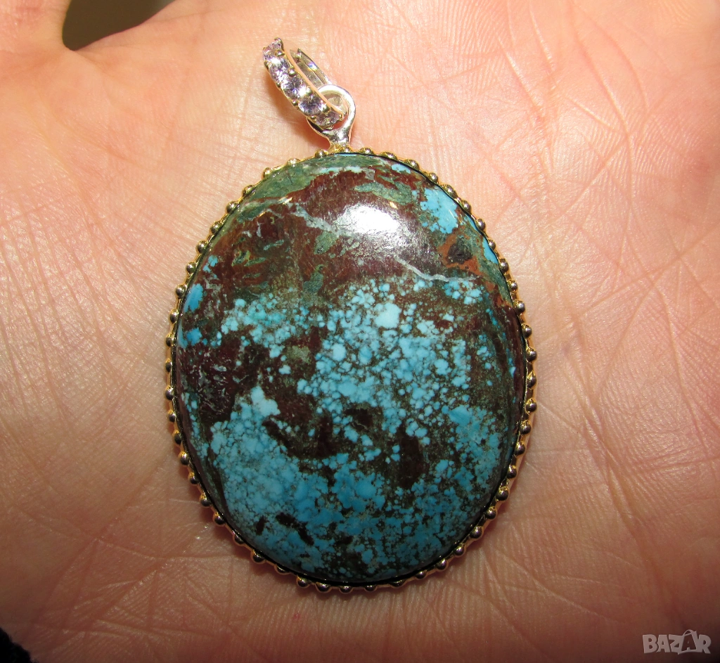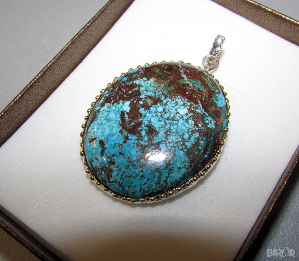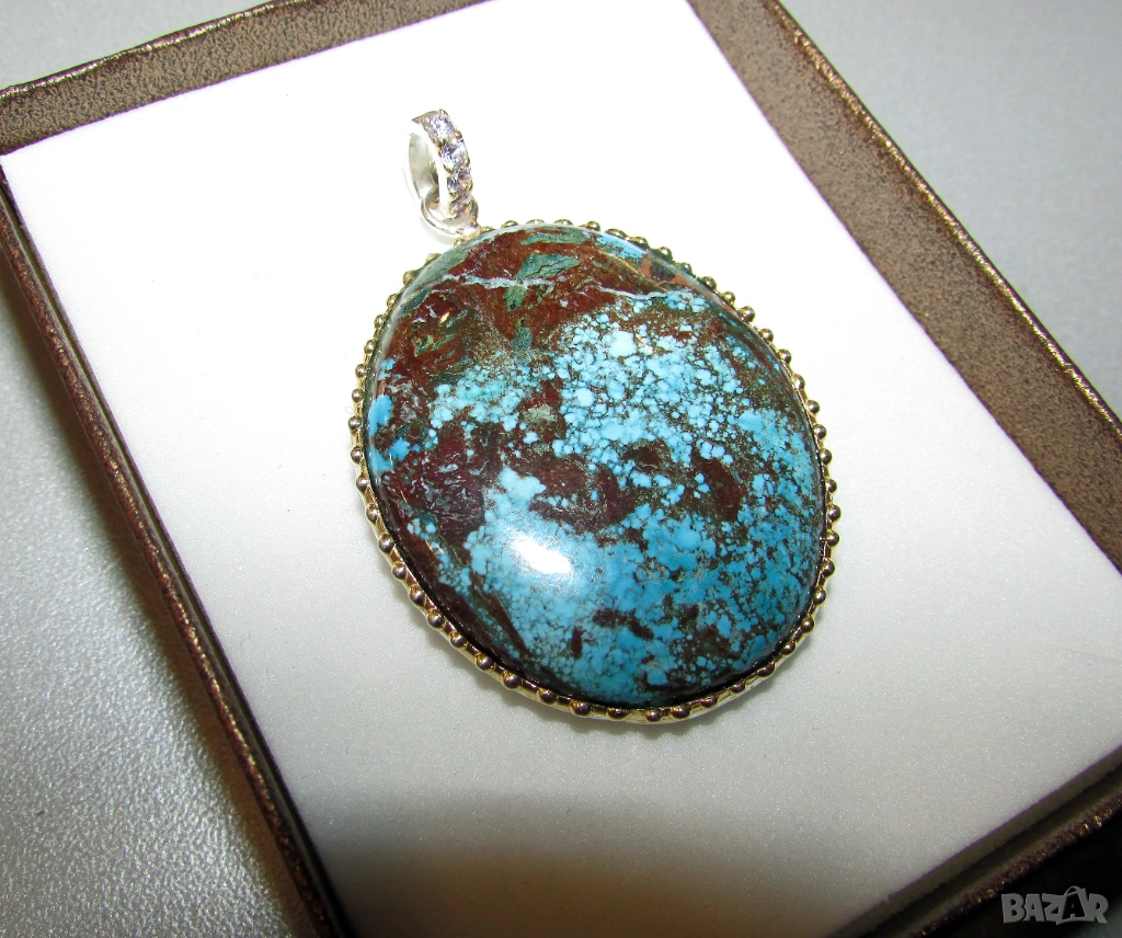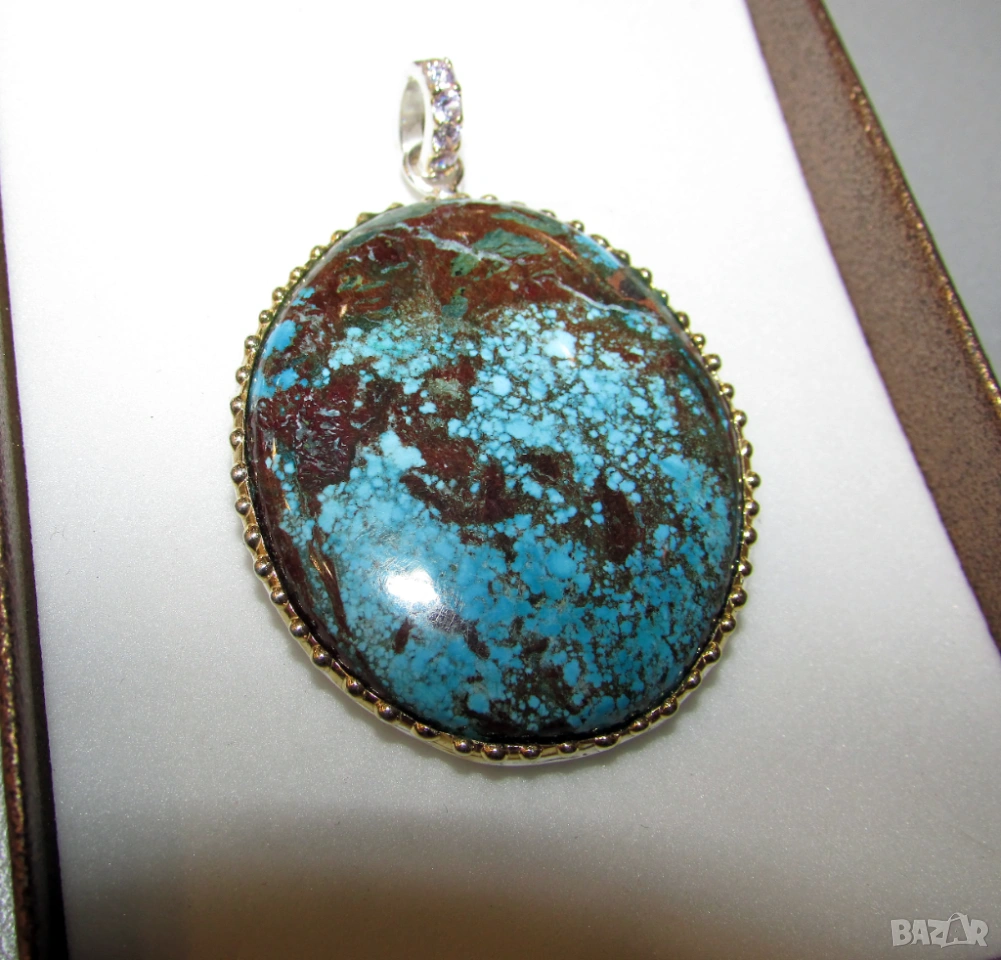 925 сребърно колие с голям тюркоаз 60 карата → Обява 54053129