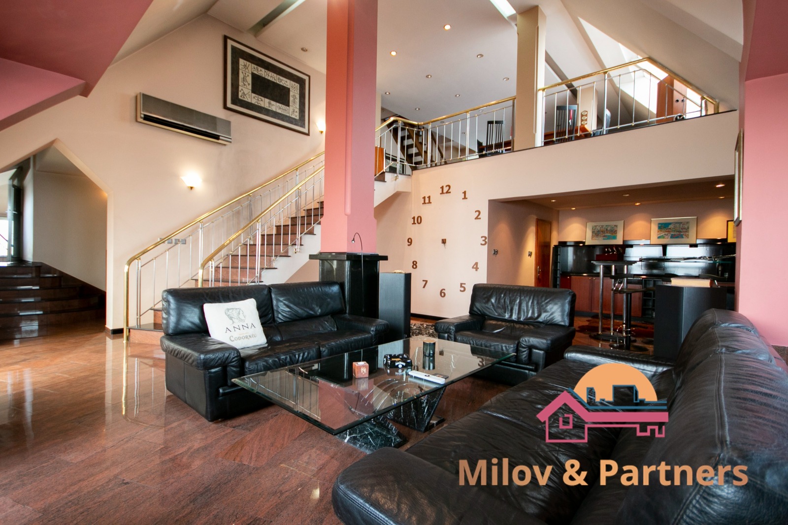 Апартамент застроен на три нива, с нескриваема панорама към Витоша и използваема площ на апартамента 309кв.м.( посочената квадратура е чиста ) .