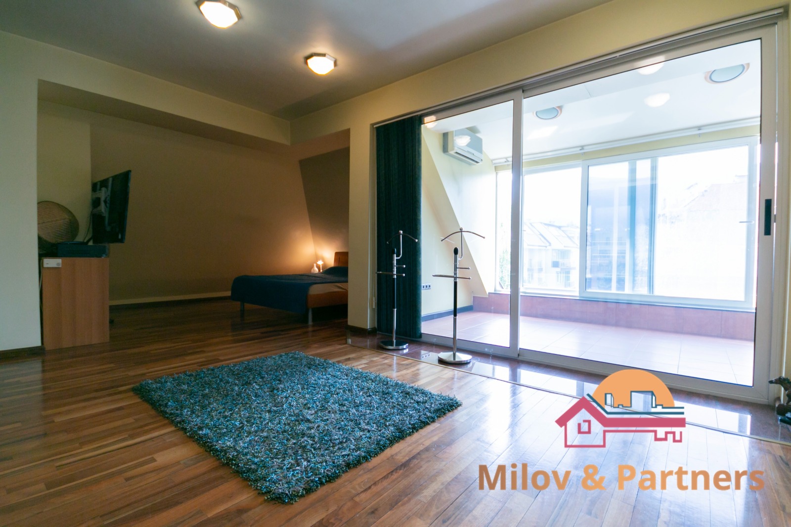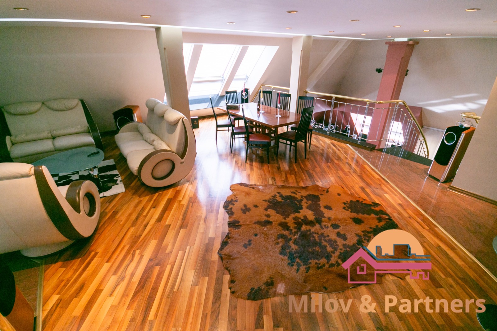 Апартамента е обзаведен по дизайнерски проект, като усещането, което дава е сравнимо с това на къща.