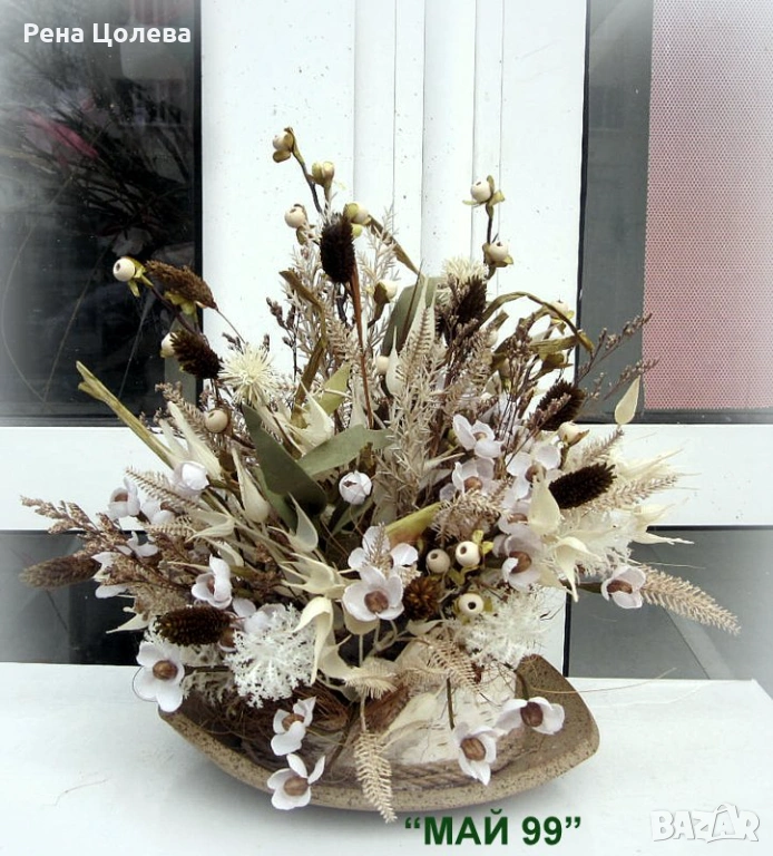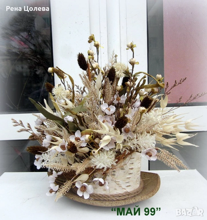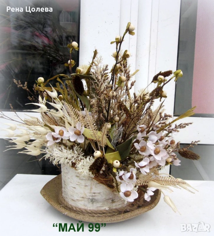 Сухи и изкуствени цветя на кръг от бреза → Обява 54053240