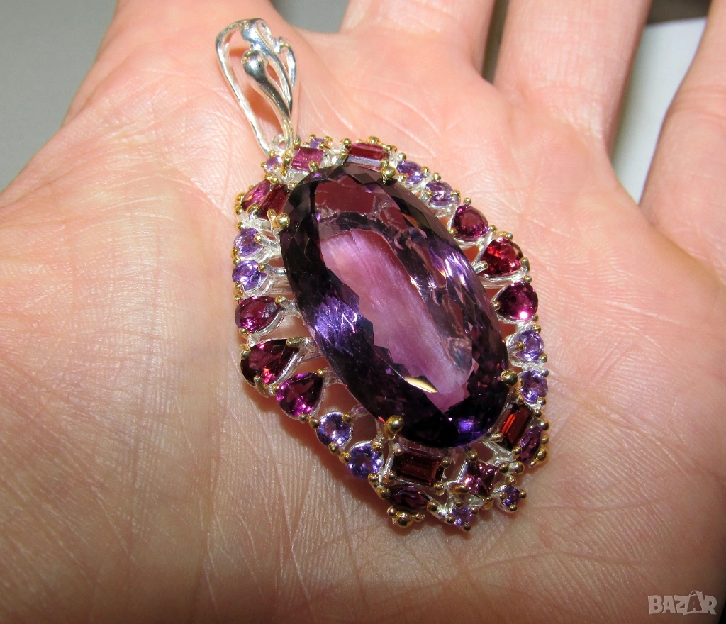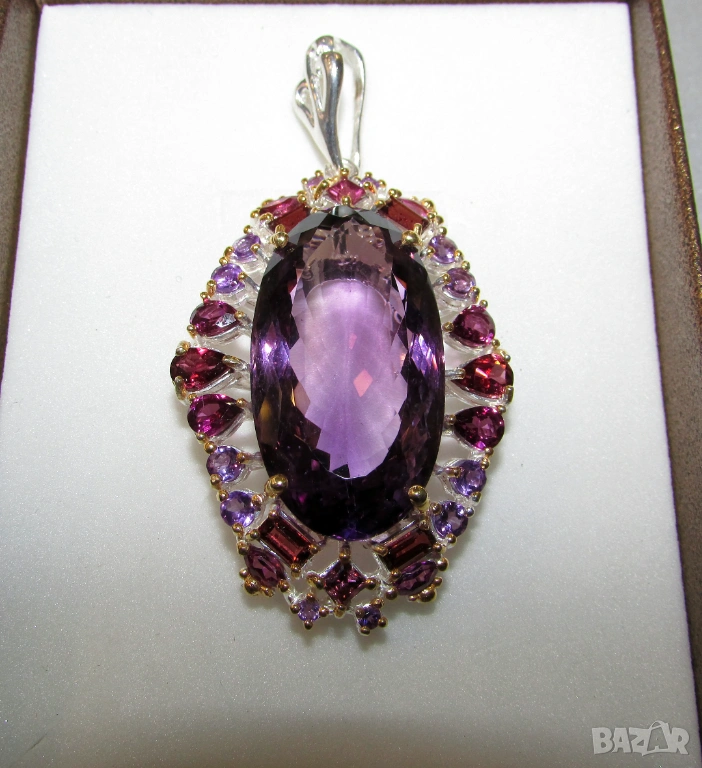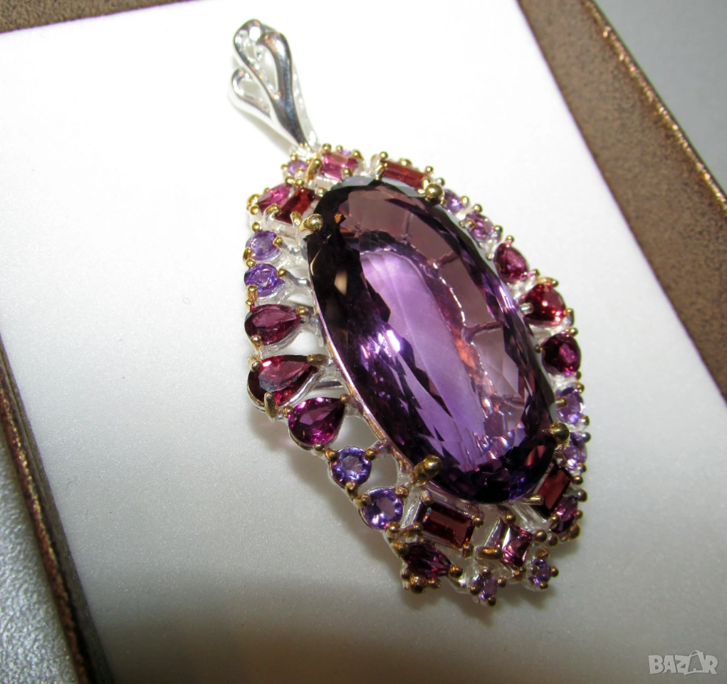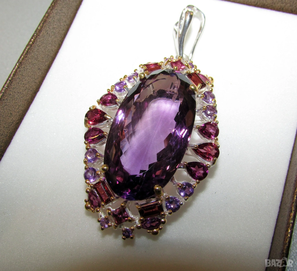 925 сребърно колие с голям аметист 50 карата → Обява 54053275