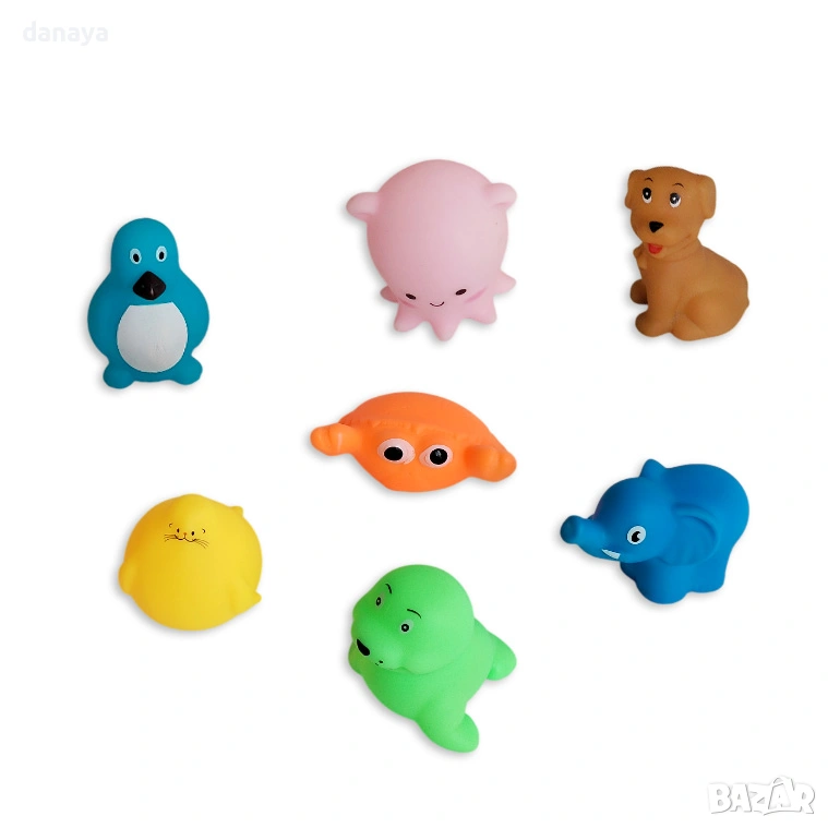 6549 Комплект мини гумени играчки за баня Животни, 7 броя