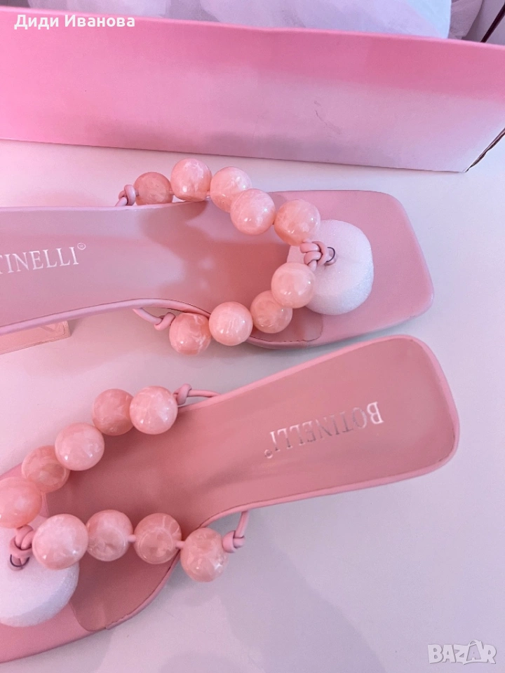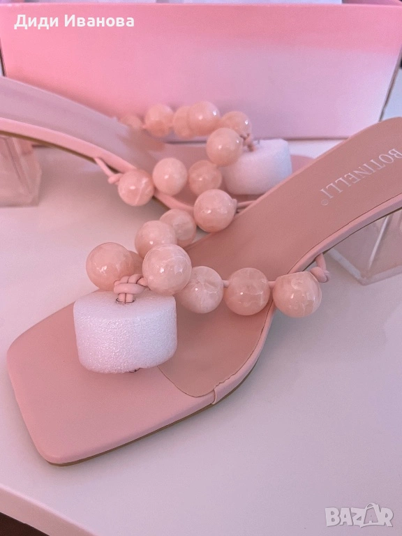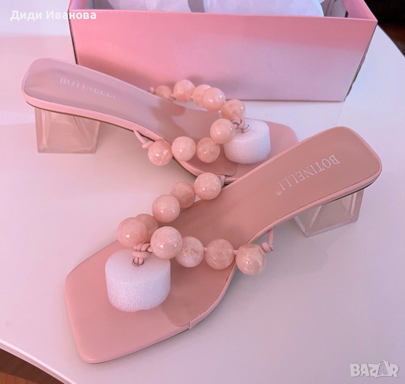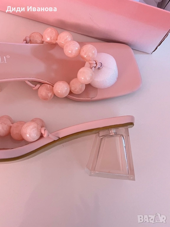 Розови сандали с нисък ток от еко кожа → Обява 54053429