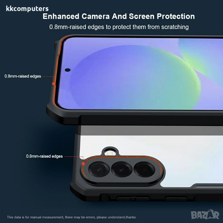 XUNDD е защитен прозрачен калъф за Samsung Galaxy A37 5G, който съчетава кристална чистота с надеждна защита. Изработен от твърд акрилен гръб и мека TPU рамка, този калъф осигурява отлична защита при падане благодарение на вградената Airbag технология в ъглите. 0.8 mm повдигнатите ръбове около камерата и екрана предпазват най-чувствителните зони от надраскване и удар. Високопрозрачният акрилен гръб е устойчив на пот, като запазва безупречен вид през цялото време. Черните ръбове придават елегантен контраст. Комплектът включва скрийн протектор за цялостна защита на екрана.
