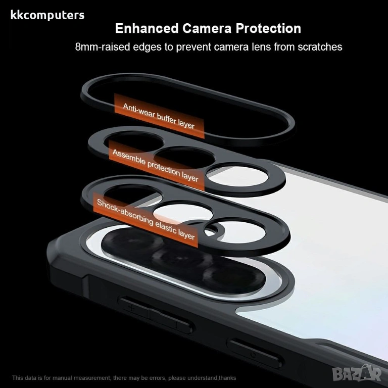 Хибридна конструкция – твърд акрил + мека TPU рамка: Комбинацията от твърд прозрачен акрилен гръб и гъвкава TPU рамка осигурява отлична устойчивост на удари, като същевременно позволява лесно поставяне и сваляне.
