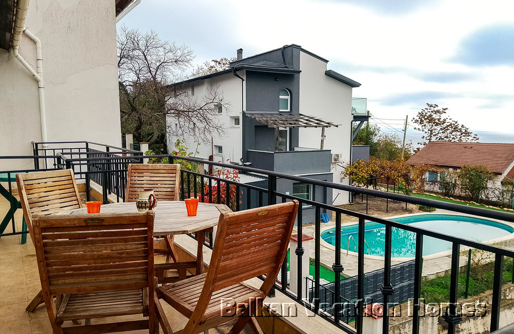 От всекидневната можете да излезете на голяма тераса с зашеметяваща гледка към околния пейзаж и Черно море. Спалнята се отваря към уютен балкон с изглед към спокойна градина.